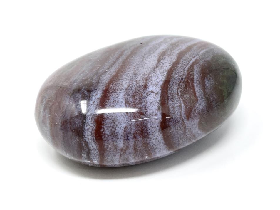 This Fancy Jasper Palm Stone displays gorgeous swirls of colour including lilacs, reds, and greens.