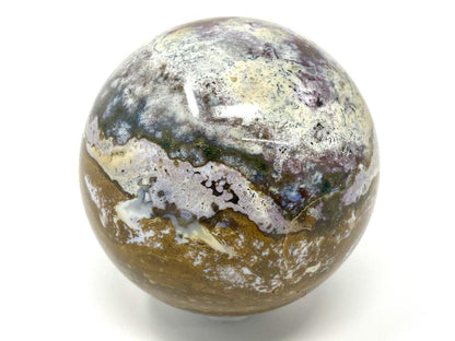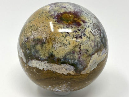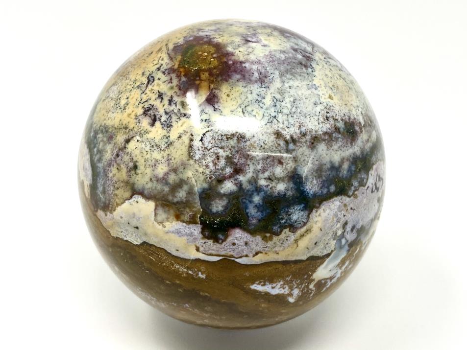 This highly polished Fancy Jasper Sphere measuring 7.2cm in diameter displays a unique pattern of stunning rainbow colours.