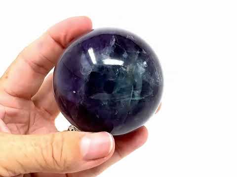 This stunning 6.1cm wide Fluorite Sphere showcases leafy green hues contrasted against rich purples.