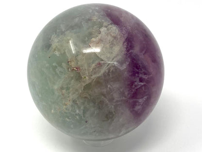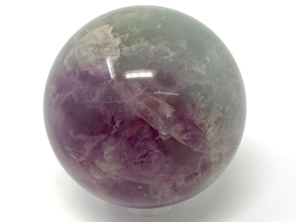 This stunning 5.8cm wide Fluorite Sphere showcases leafy green hues contrasted against rich purples.