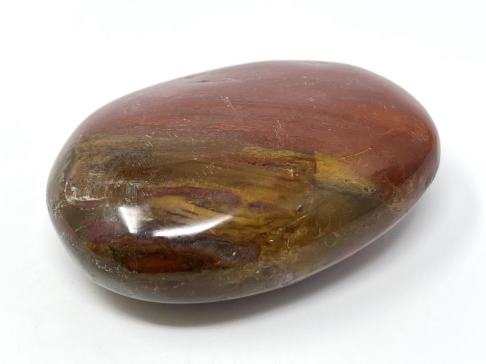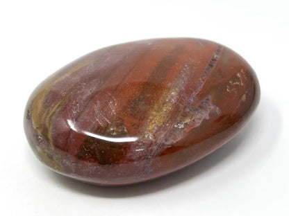 Displaying rich red, dark pink, and brown tones, the patterns of this Petrified Wood Palm Stone are truly mesmerising.