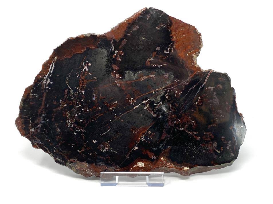 This magnificently large red Fossilised Wood slice measuring 27cm long displays gorgeous colours and unique patterns and comes complete with display stand.