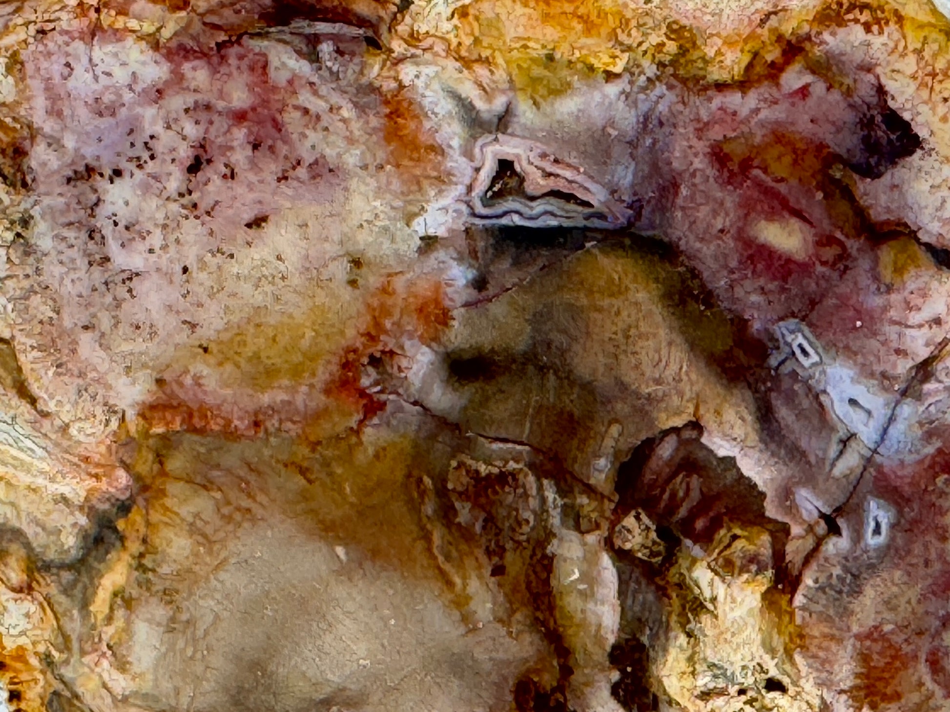 - These colourful minerals were precipitated out of the water into solid form, and entered the wood, replacing the original plant material.