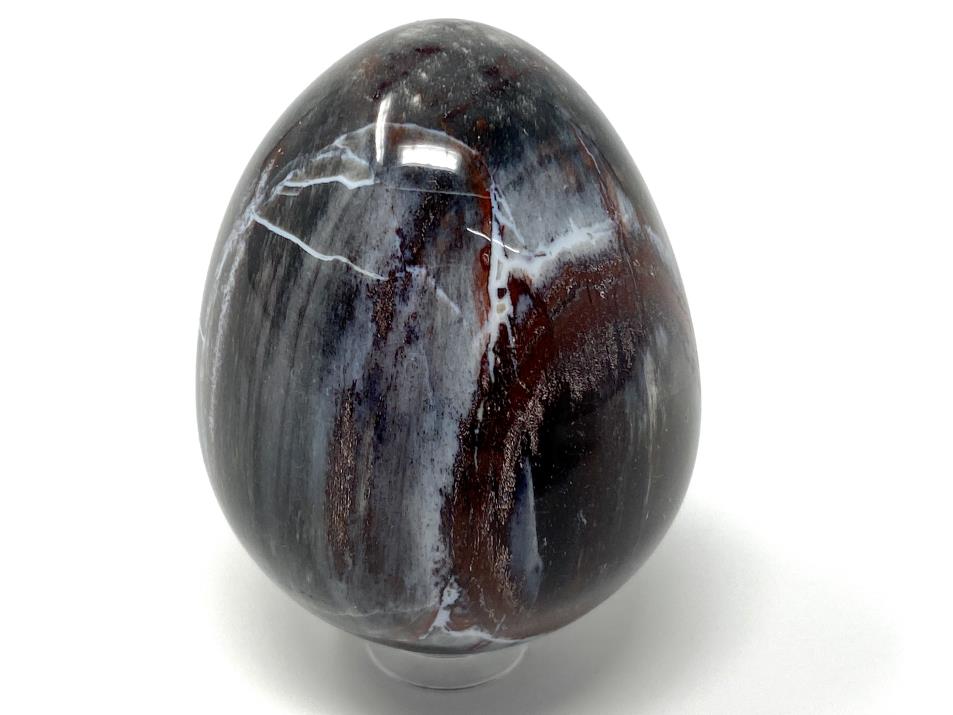 Displaying a stunning kaleidoscope of vibrant colours, including black, grey, and streaks of dark red and white, the patterns of this Petrified Wood egg are truly mesmerising.