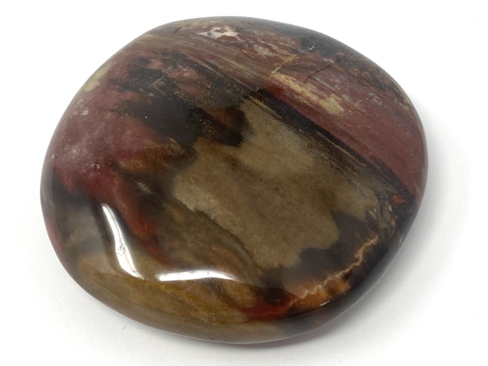 Displaying rich brown, cream, and red tones, the patterns of this Petrified Wood Palm Stone are truly mesmerising.