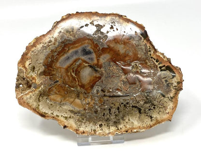 This gorgeous Fossilised Wood Slice measuring 15.1cm long displays gorgeous colours and unique patterns.