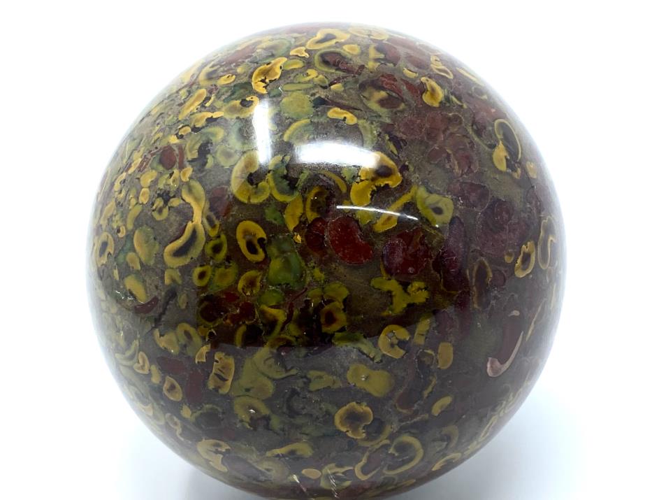 This stunning Large Fruit Jasper Crystal Sphere (also known as a Large Ajooba Jasper Crystal Sphere) measuring 10.8cm in diameter has been beautifully polished to show off its vast array of colours and patterns that lend individuality to each selected piece.