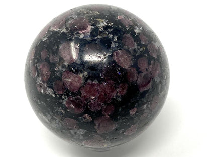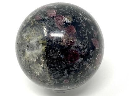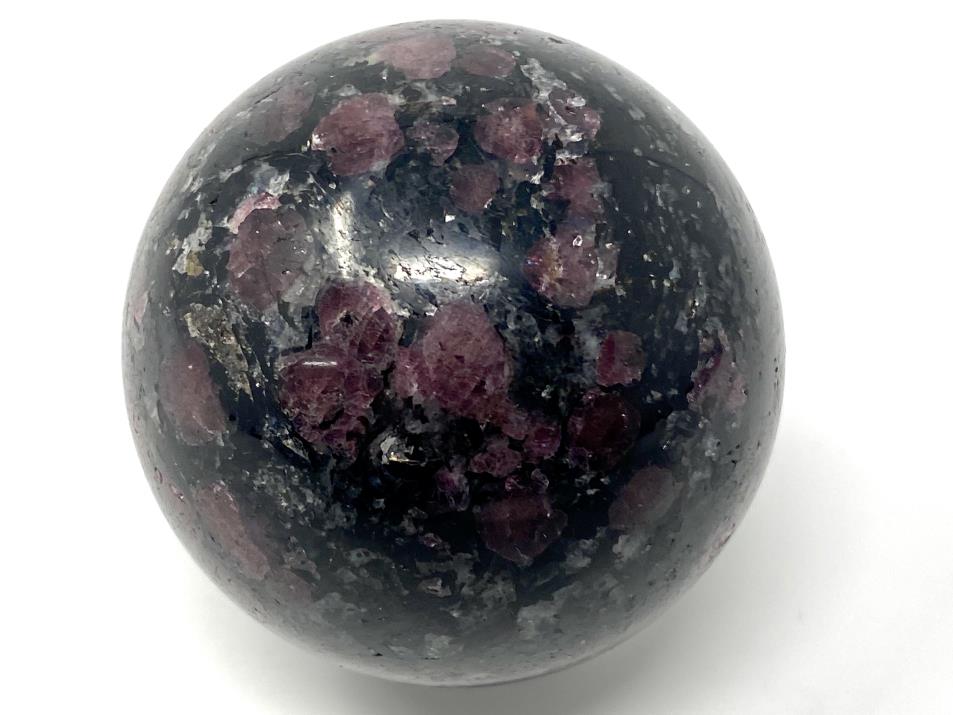 This gorgeous Garnet in Black Tourmaline Sphere measuring 5.3cm in diameter is a stunning black crystal with striking circular red Garnet inclusions.