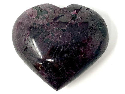 This gorgeous Garnet Crystal Heart measuring 5.9cm wide displays stunning, wine-red hues topped with sparkling, twinkling ruby-red flecks.