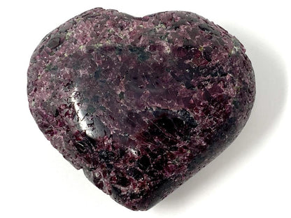 This gorgeous Garnet Crystal Heart measuring 5.5cm wide displays stunning, wine-red hues topped with sparkling, twinkling ruby-red flecks.