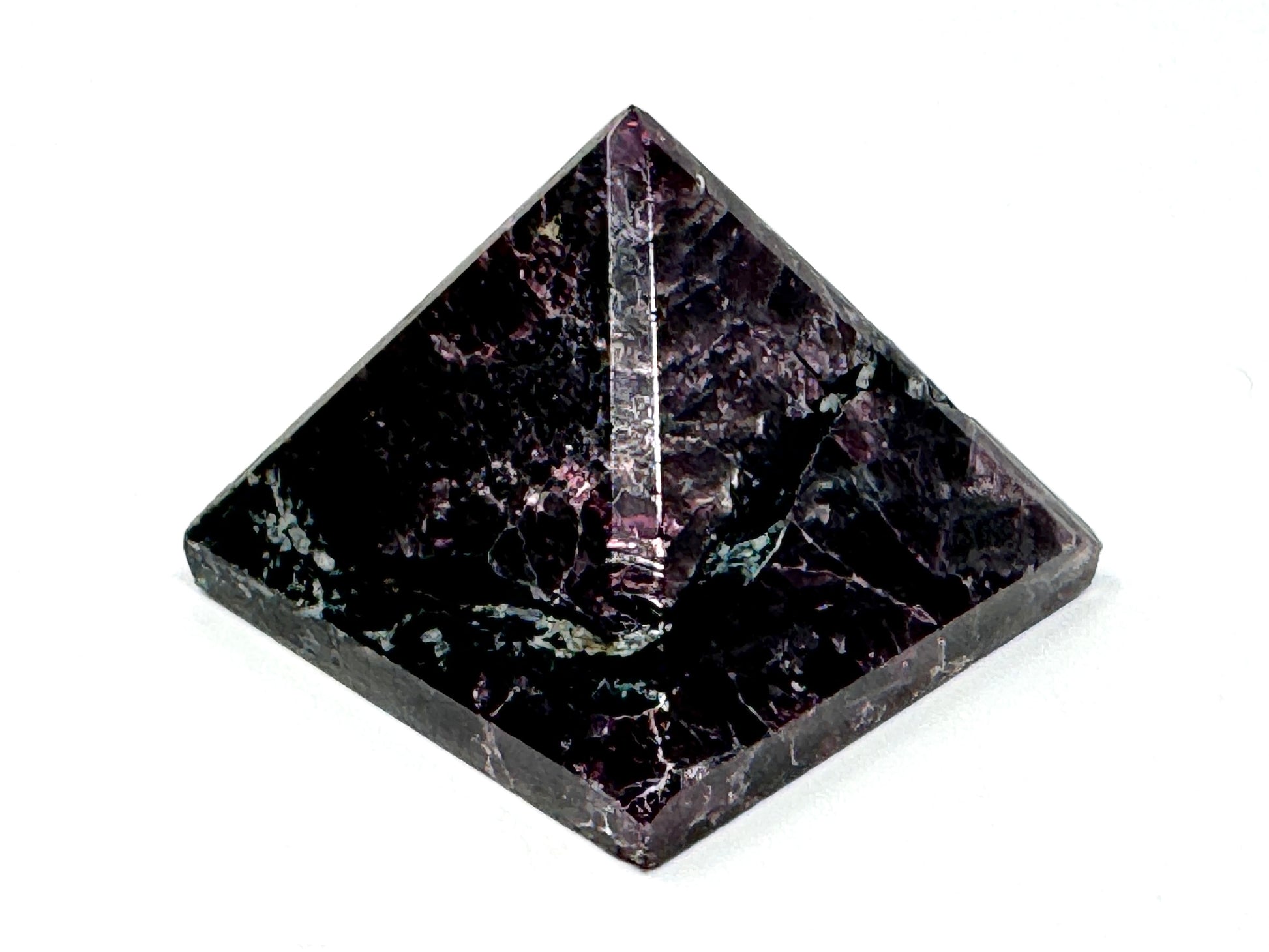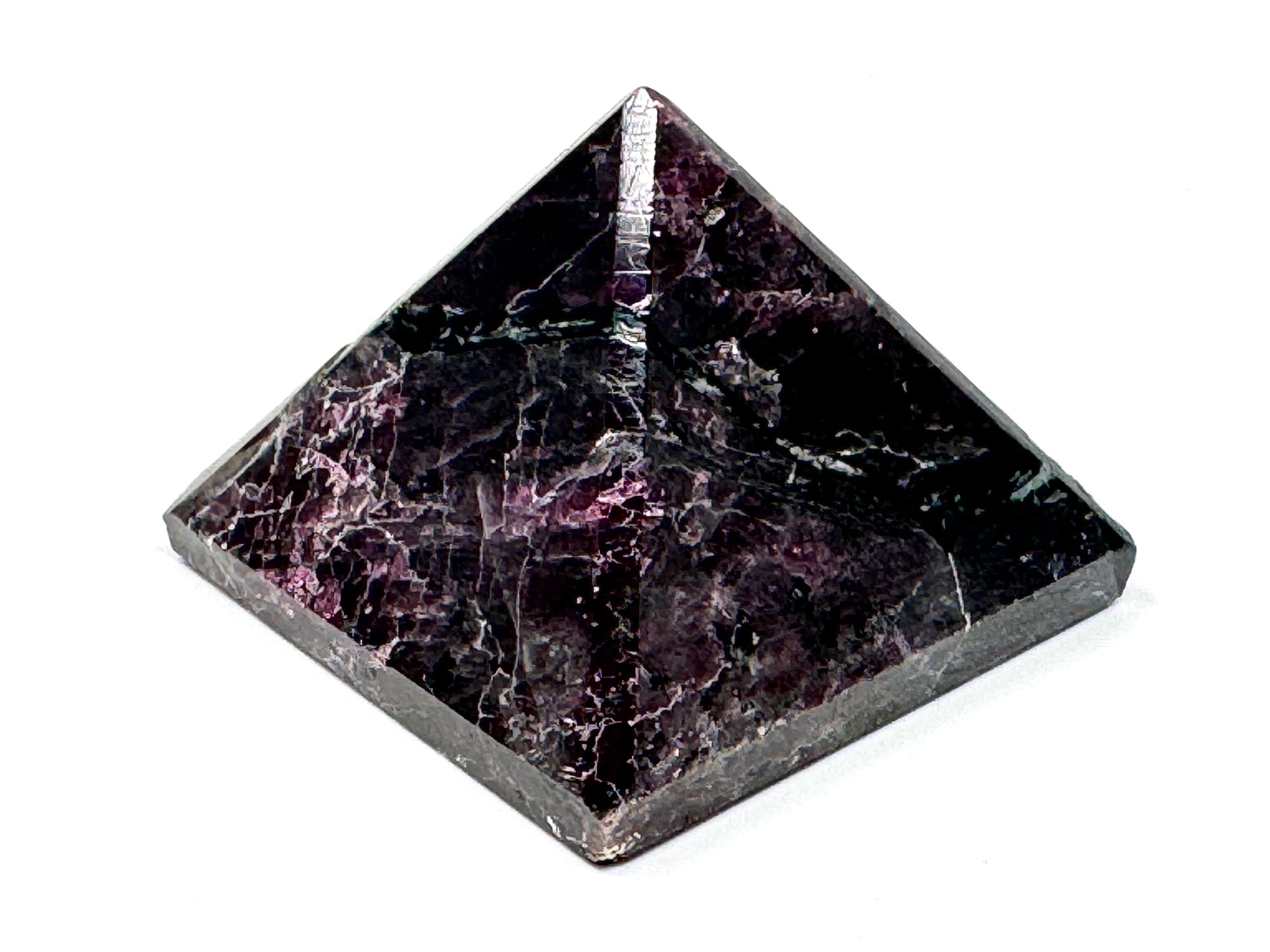 It is rare to see Pyrope Garnet cut into polished crystal shapes like crystal pyramids, spheres, and palm stones given the difficulty of working the stone: we are thankful that our skilled artisans are able to create high-quality polished Pyrope Garnet in our workshop in India.