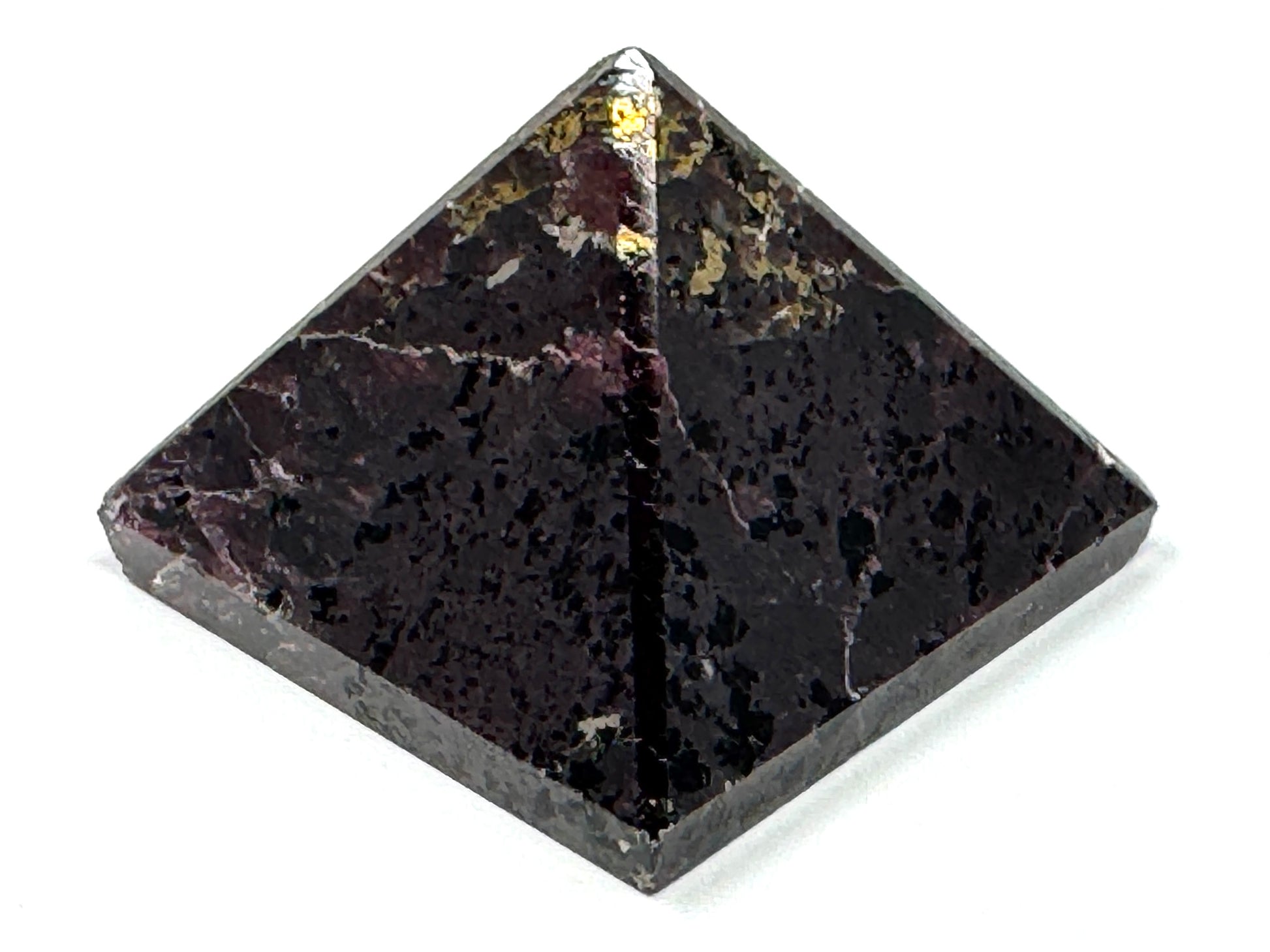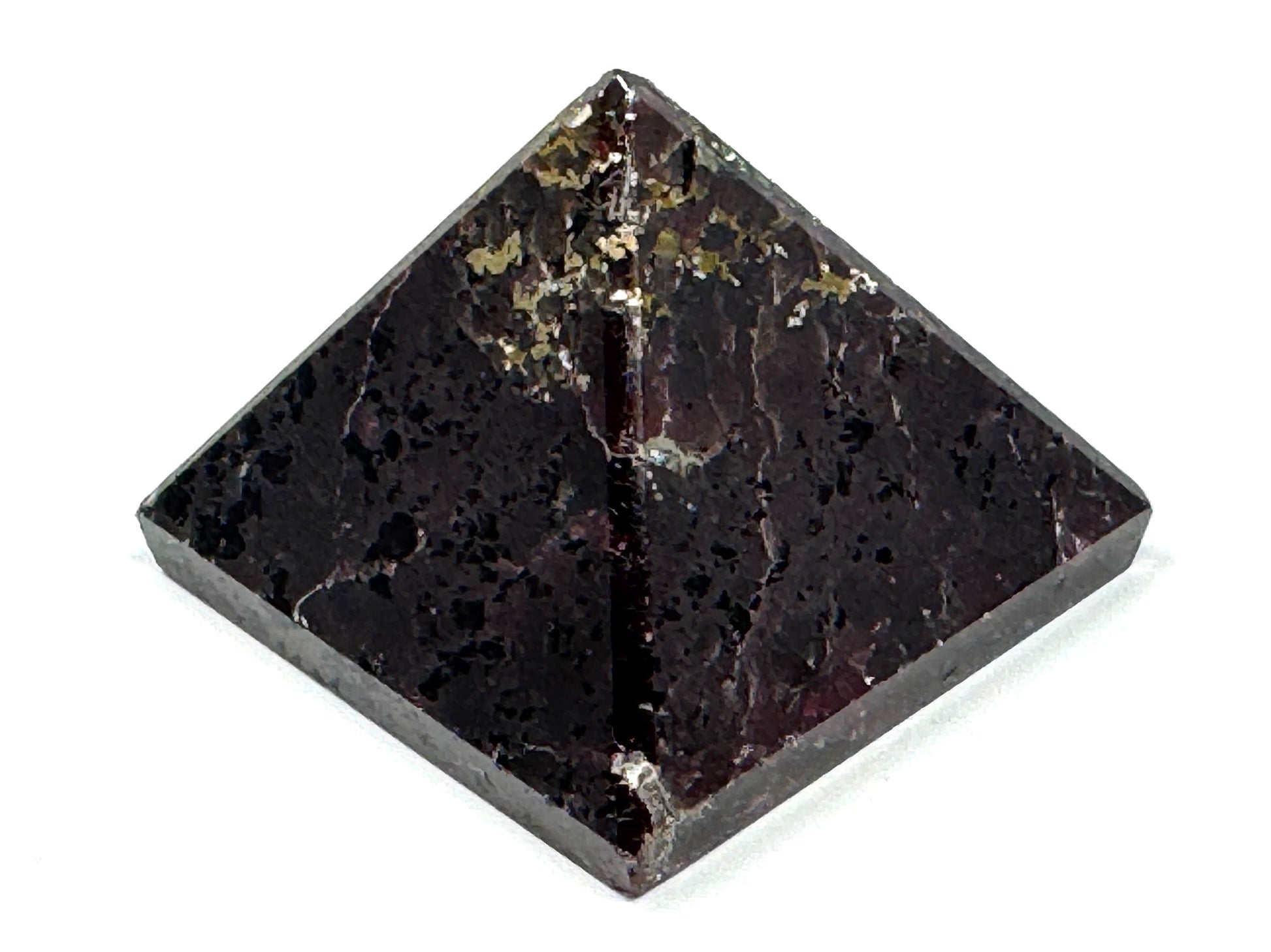 This beautiful Garnet Crystal Pyramid with a 5.2cm wide square base displays stunning, wine-red hues topped with sparkling, twinkling ruby-red flecks. It also contains a large patch of golden pyrite.
