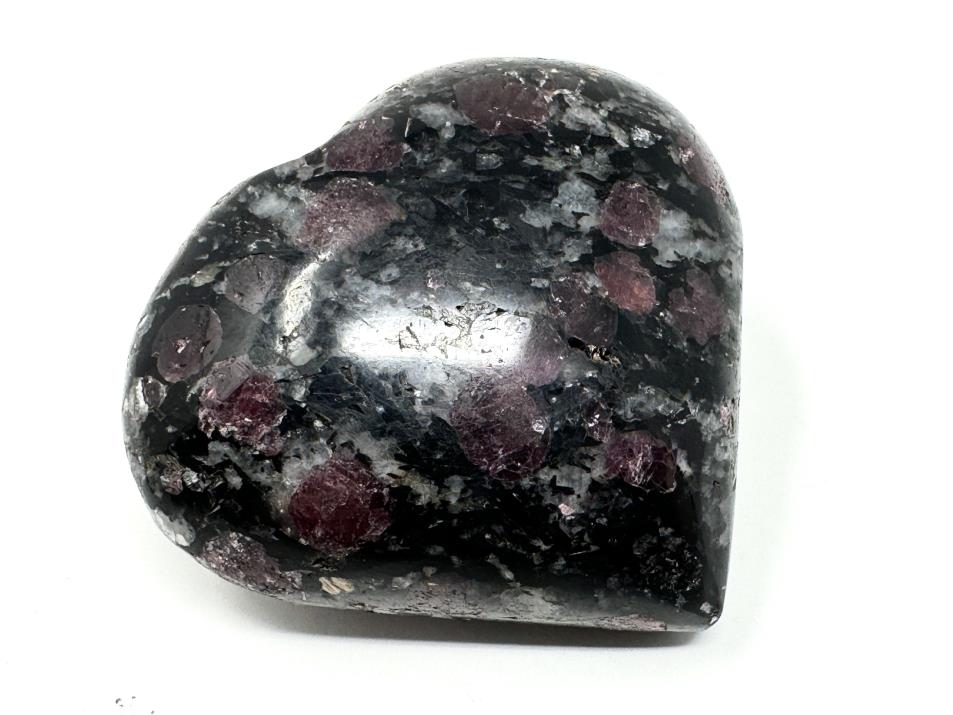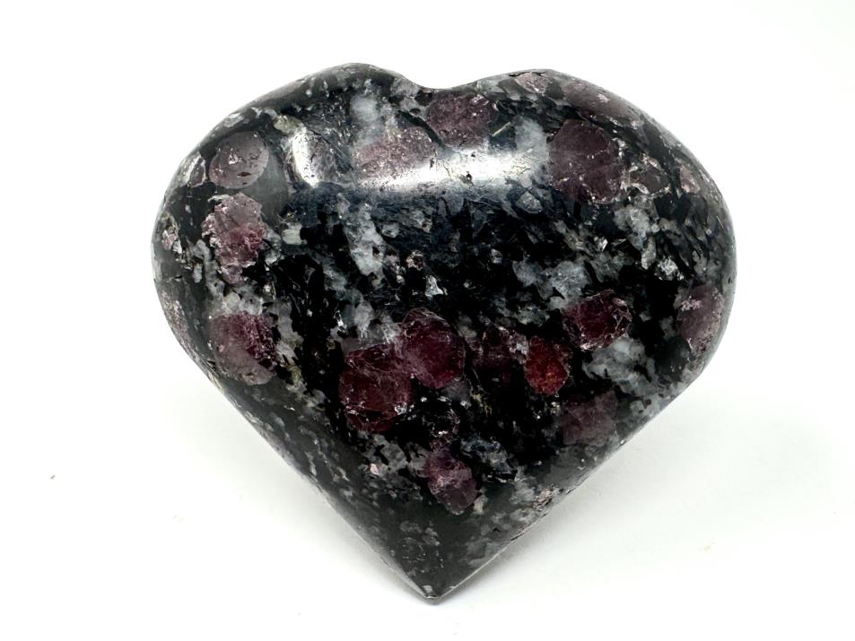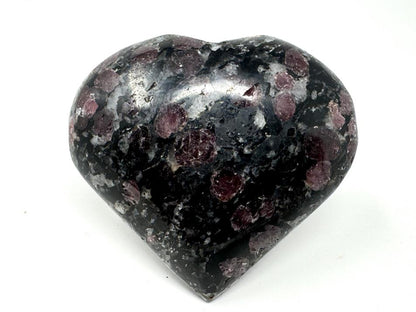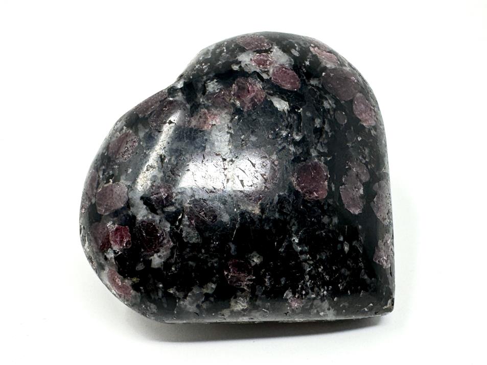 This gorgeous Garnet in Black Tourmaline Heart measuring 5.6cm wide is a stunning black crystal with striking circular red Garnet inclusions.