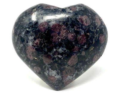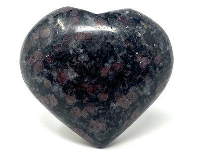 This gorgeous Garnet in Black Tourmaline Heart measuring 5.5cm wide is a stunning black crystal with striking circular red Garnet inclusions.