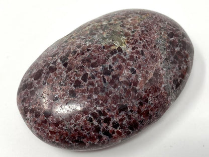 The Garnet Stone has been cut into a smooth, tactile oval palm stone shape.