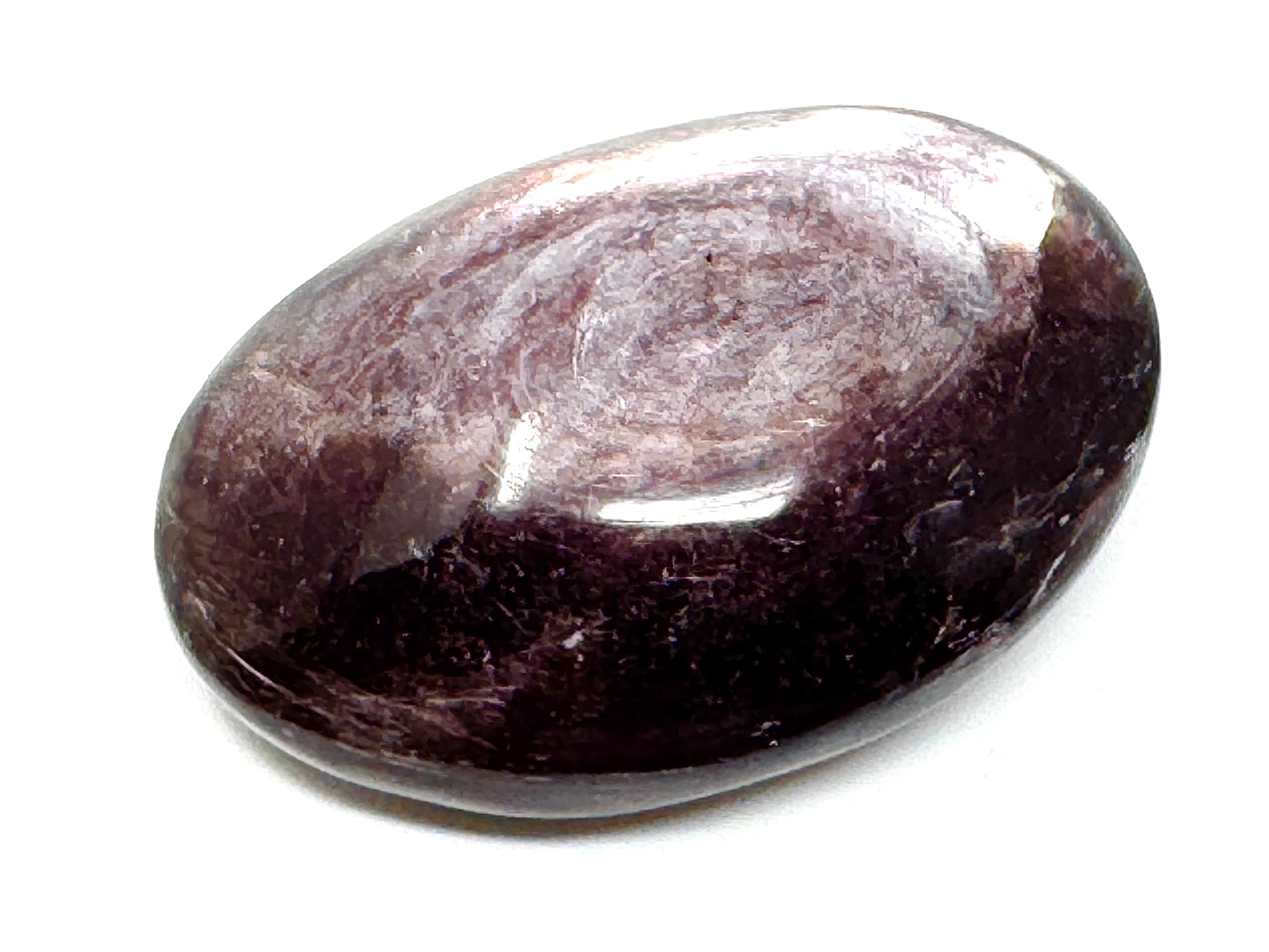This stunning rare Purple Lepidolite Mica Gemstone has been carefully cut and polished into a tactile, smooth oval palm stone shape from Natural Gem-Quality Lepidolite Stone.