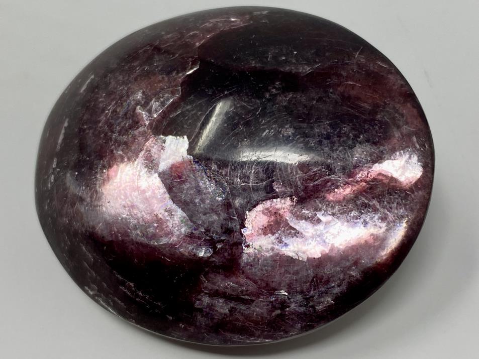 This Gem Lepidolite Pebble (also known as a Gem Lepidolite Palm Stone) is a beautiful Purple Gemstone which displays incredibly translucency under torchlight, showing off its delightful range of vivid purple-red hues, including rich plums and deep wine-reds.