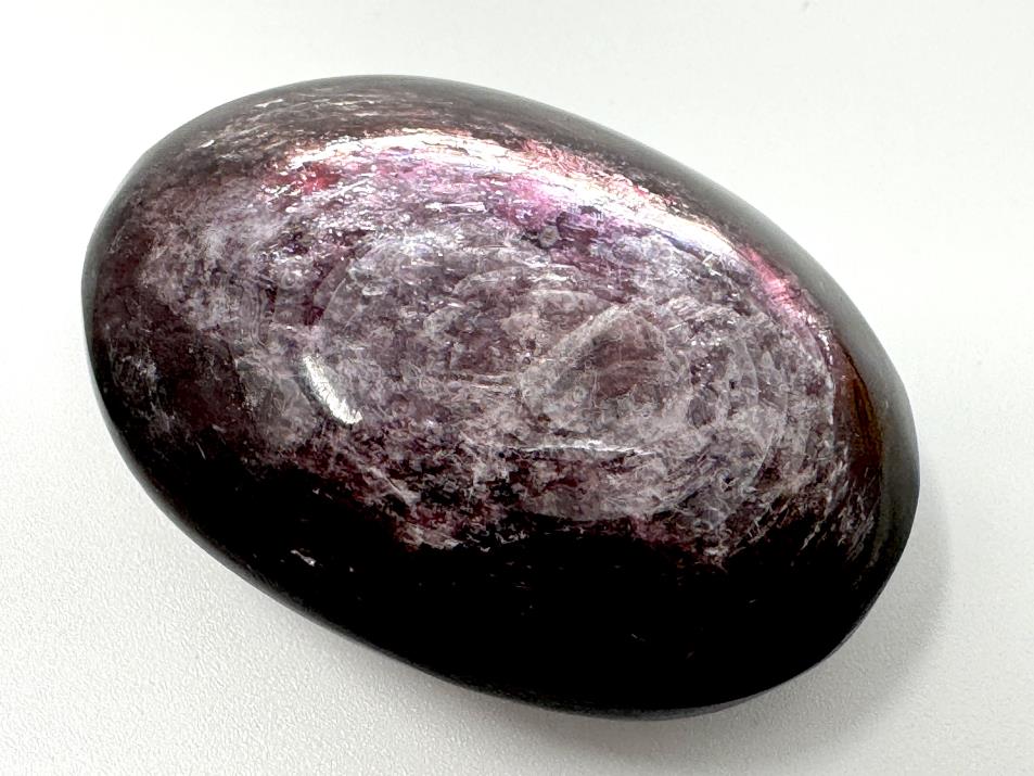 This Gem Lepidolite Pebble (also known as a Gem Lepidolite Palm Stone) is a beautiful Purple Gemstone which displays incredibly translucency under torchlight, showing off its delightful range of vivid purple-red hues, including rich plums and deep wine-reds.