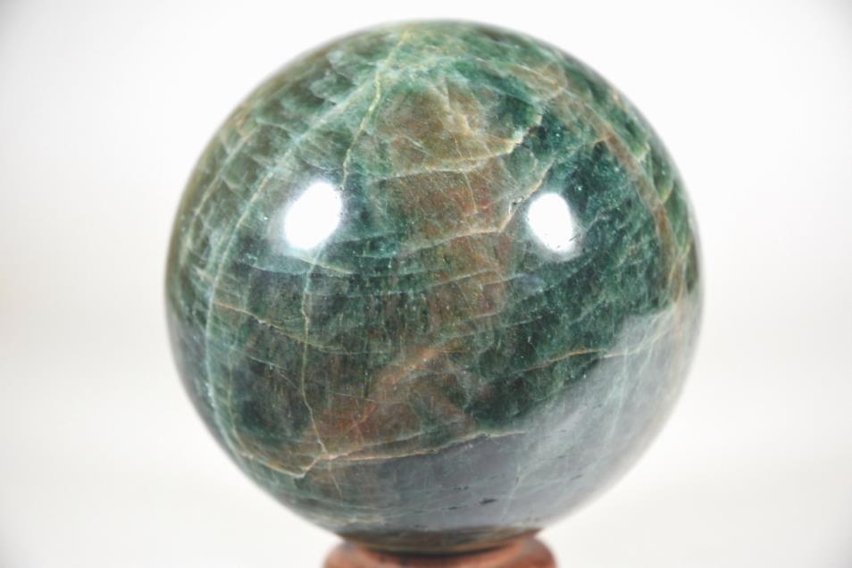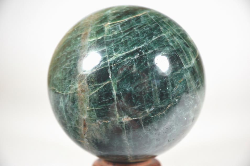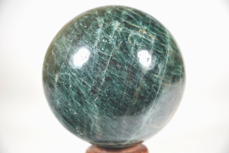 This Green Apatite Crystal has been carefully cut and polished into a smooth crystal sphere or crystal ball shape.