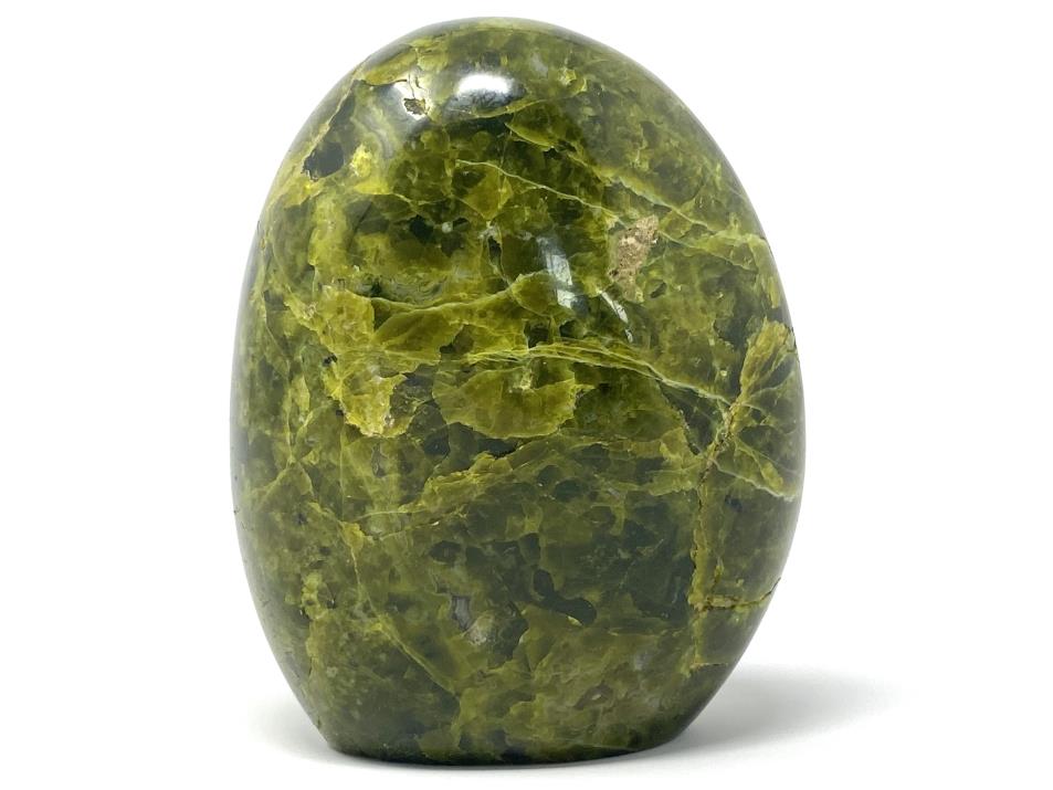 This striking Green Opal Crystal Freeform measures 9cm tall and displays a gorgeous array of green hues, including vibrant lime-greens, vivid apple-greens, and dark leafy-greens.