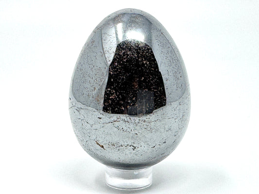 This shimmering, silvery Hematite Egg Crystal would make an excellent addition to any crystal collection.