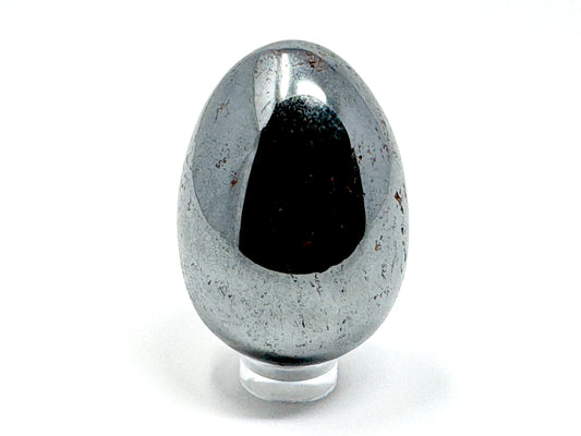 The Hematite Crystal has been cut and polished into a sleek crystal egg shape and comes complete with a complementary Plastic Crystal Display Stand.