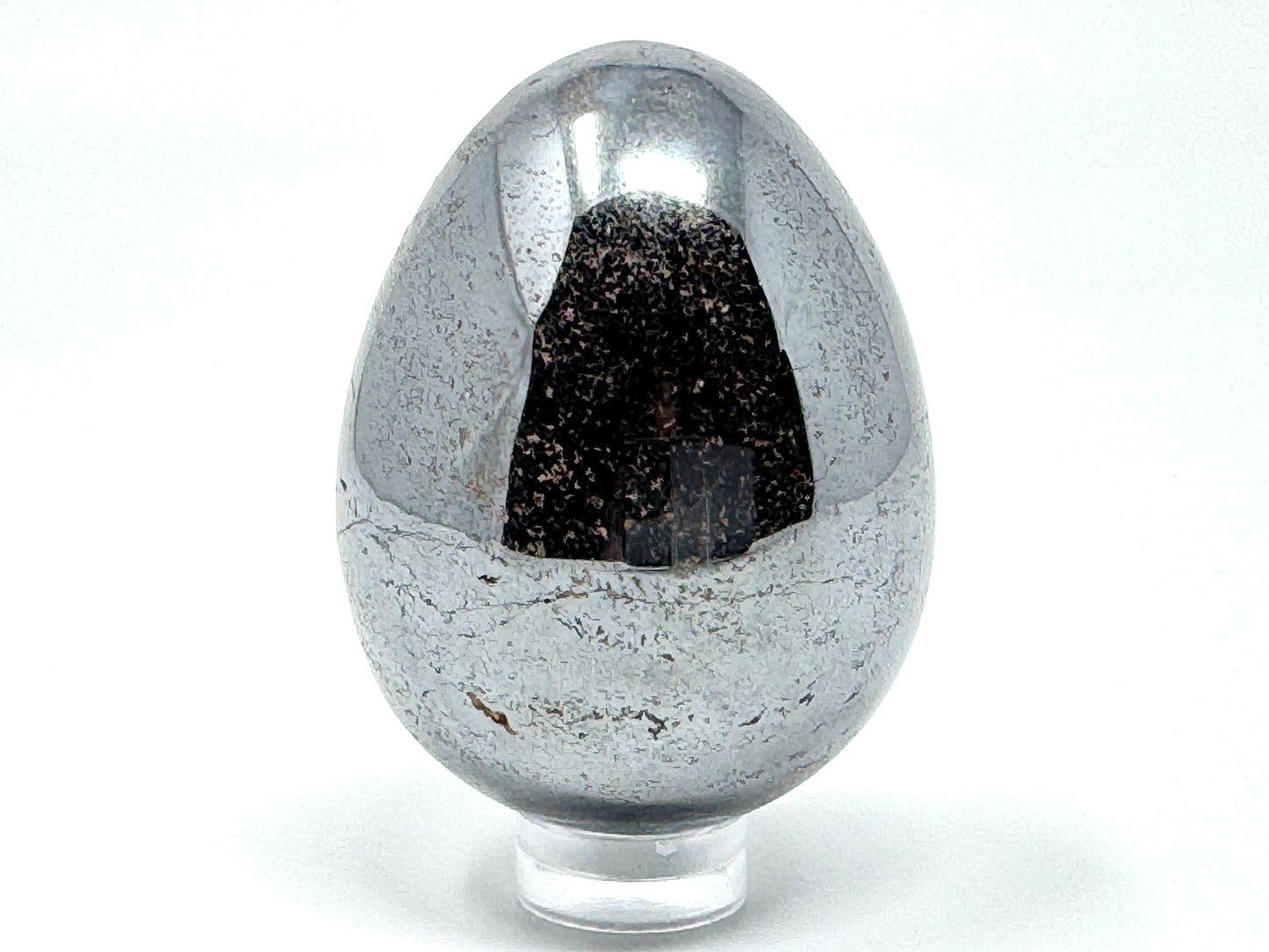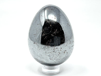 This shimmering, silvery Hematite Egg Crystal would make an excellent addition to any crystal collection.