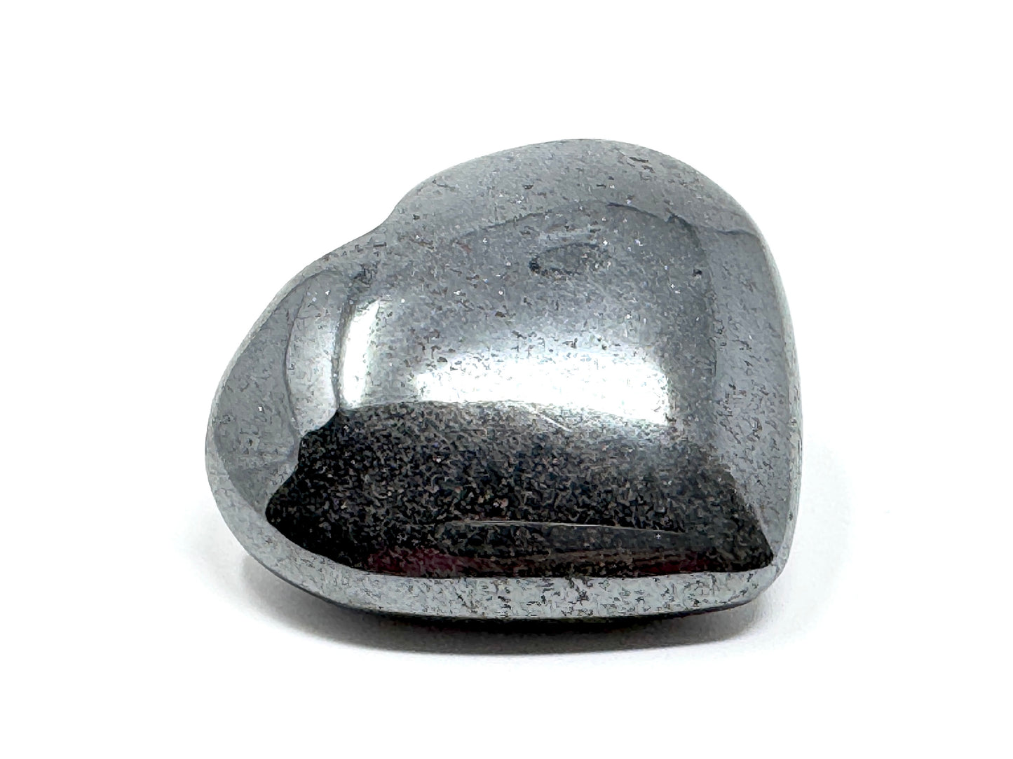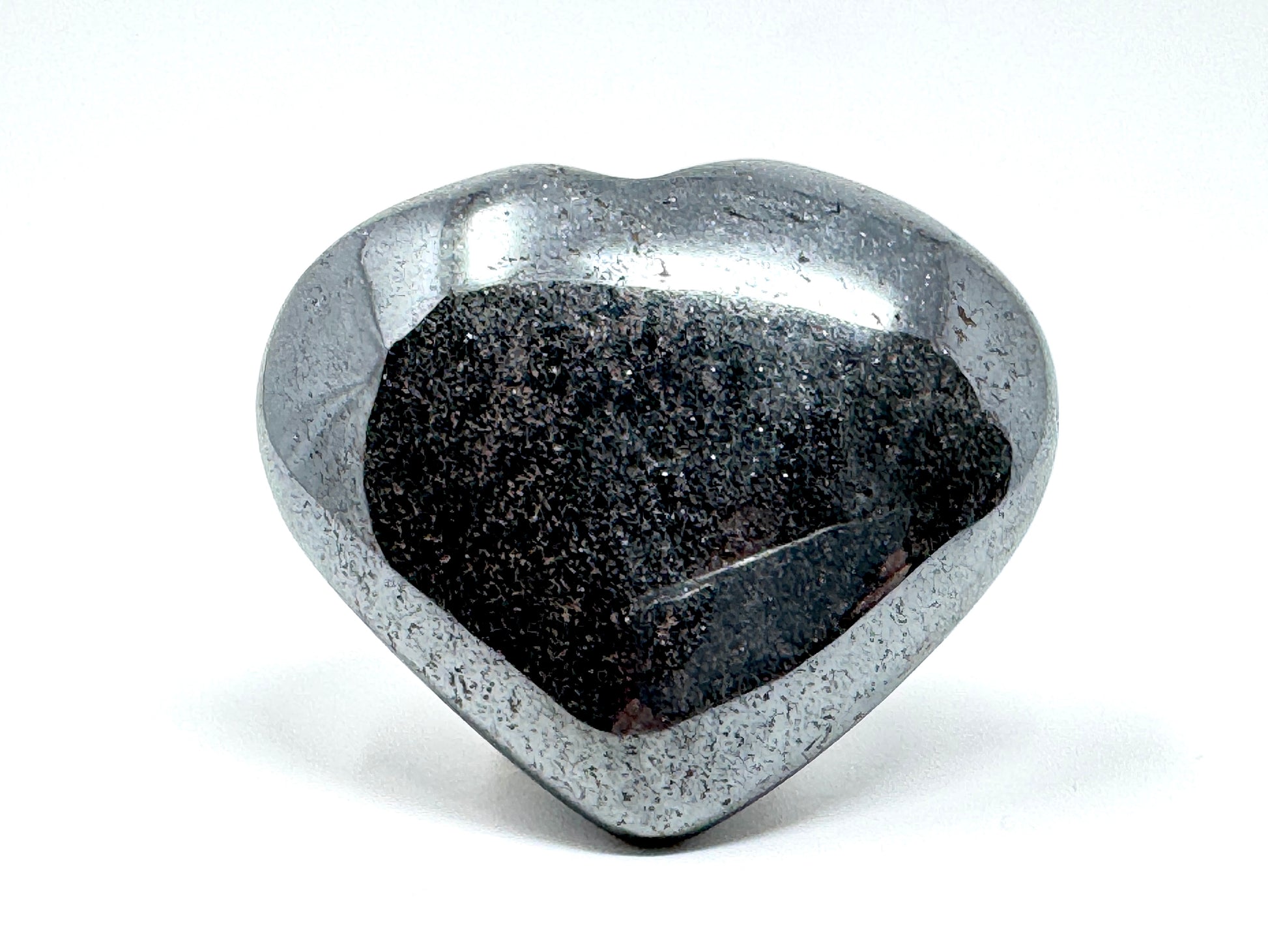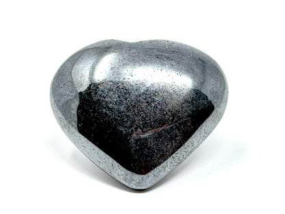 The Hematite Crystal has been cut and polished into a sleek, tactile crystal heart shape.