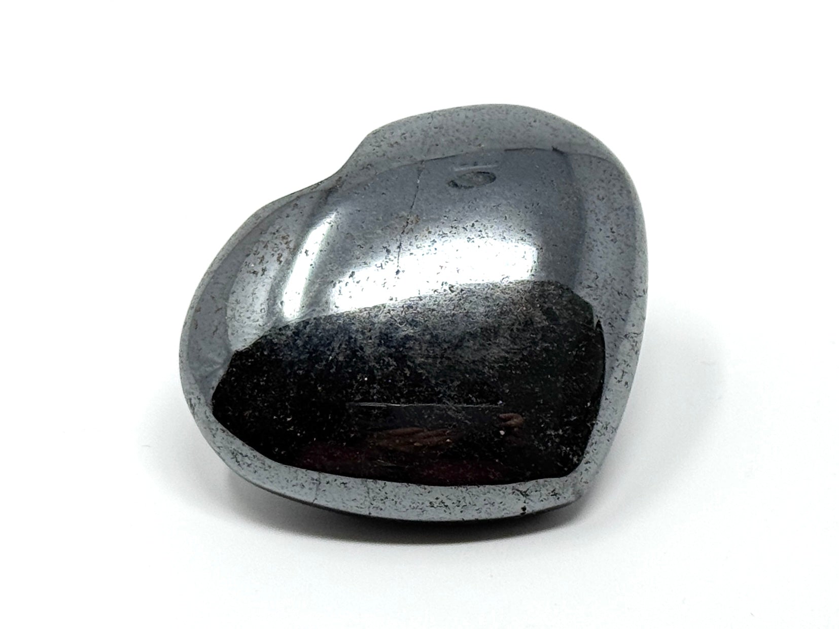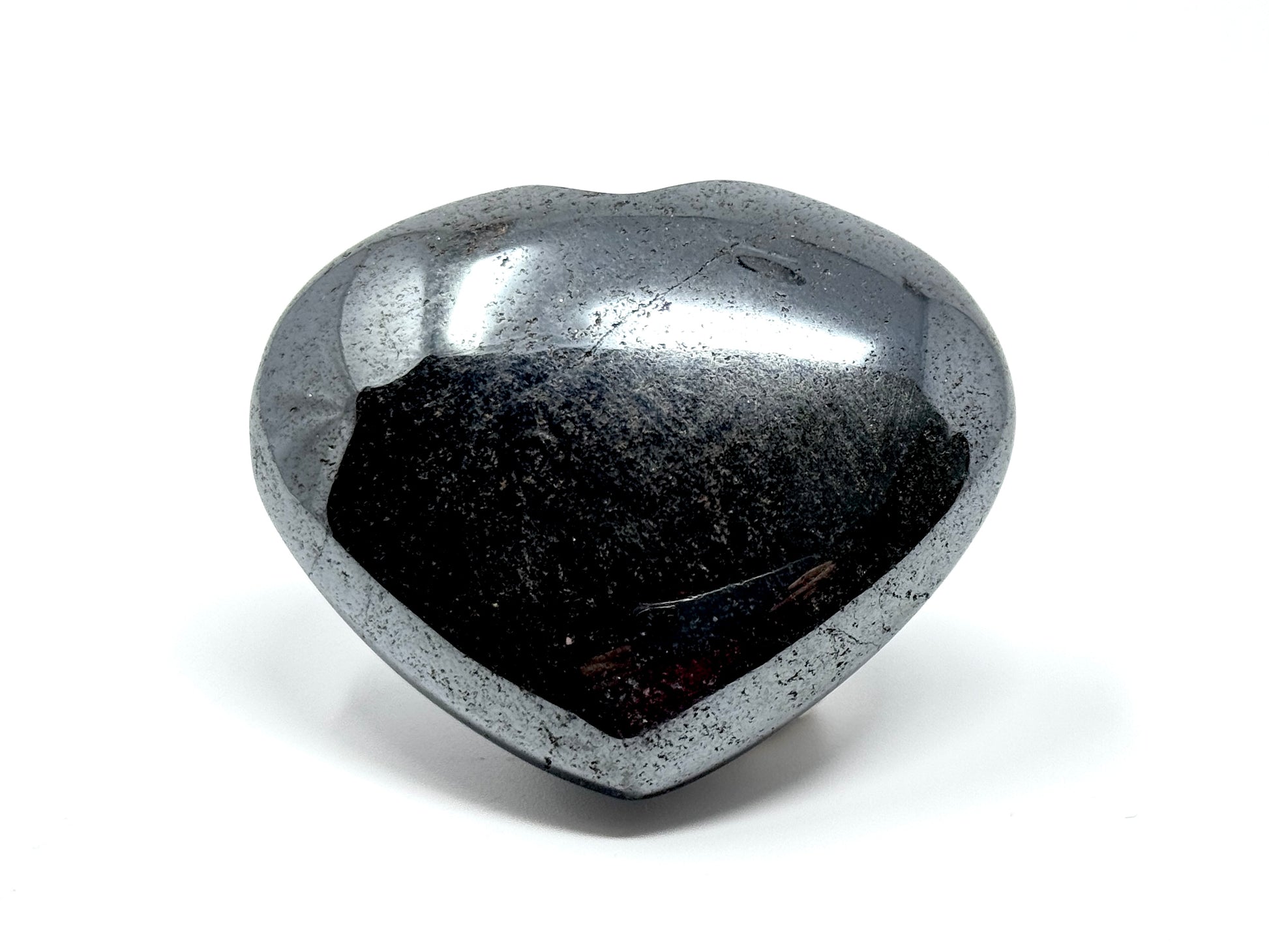 The Hematite Crystal has been cut and polished into a sleek, tactile crystal heart shape