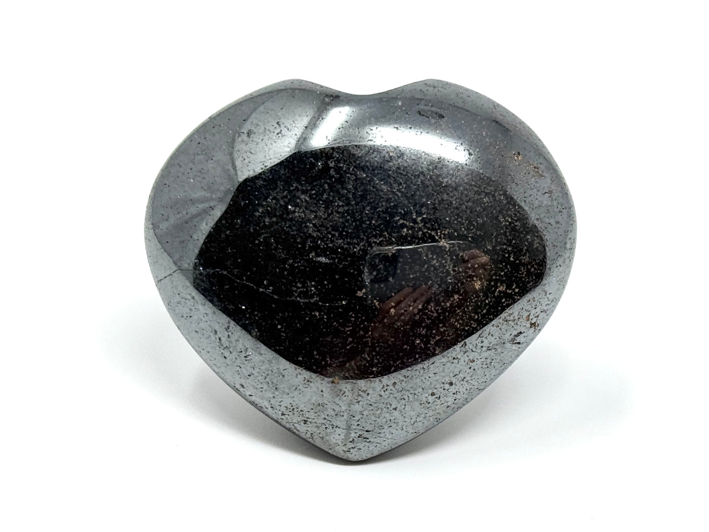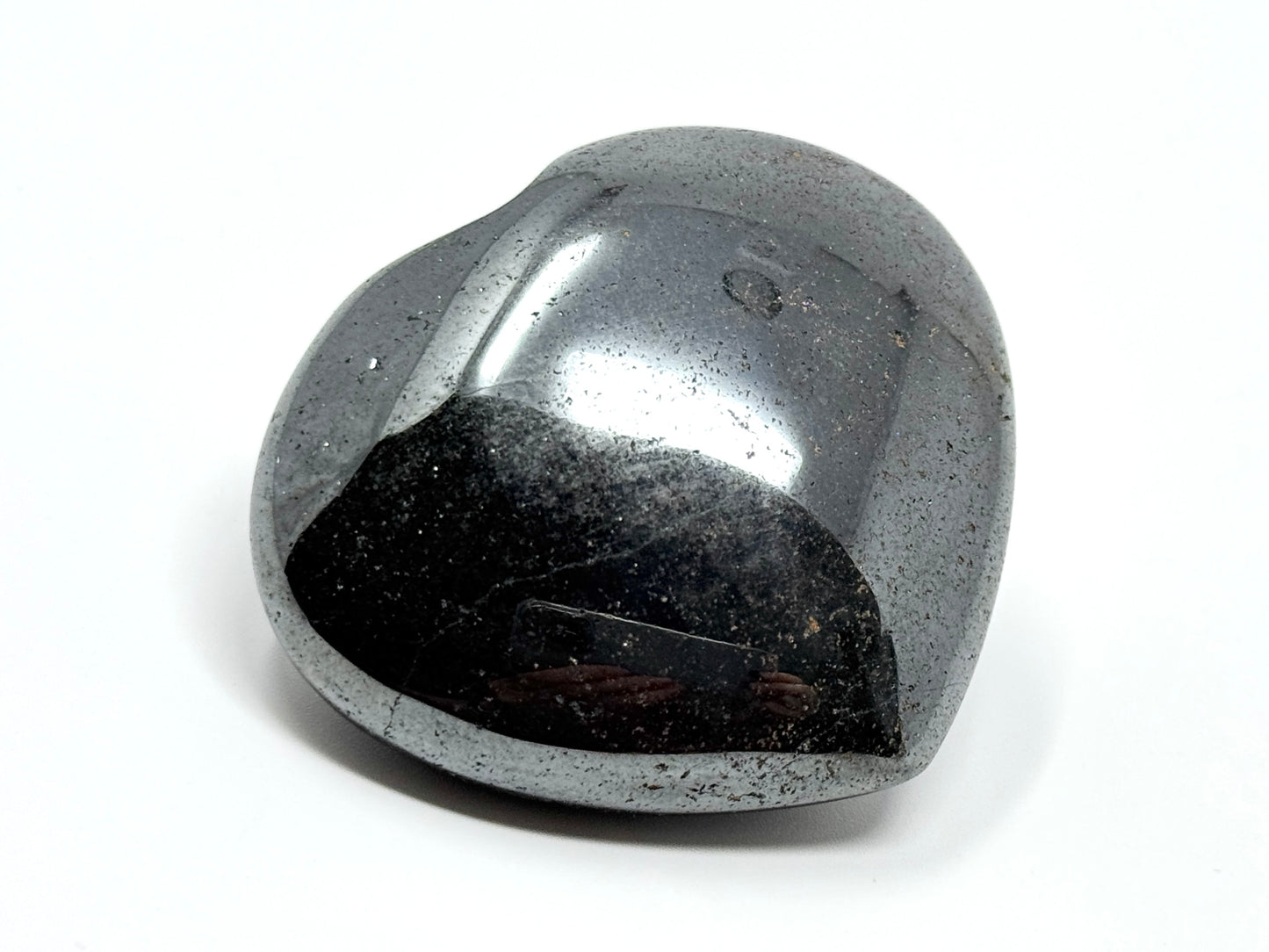 This Hematite Heart Crystal reflects like a mirror, in a similar vein to Pyrite.