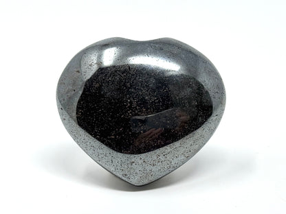 The Hematite Crystal has been cut and polished into a sleek, tactile crystal heart shape.