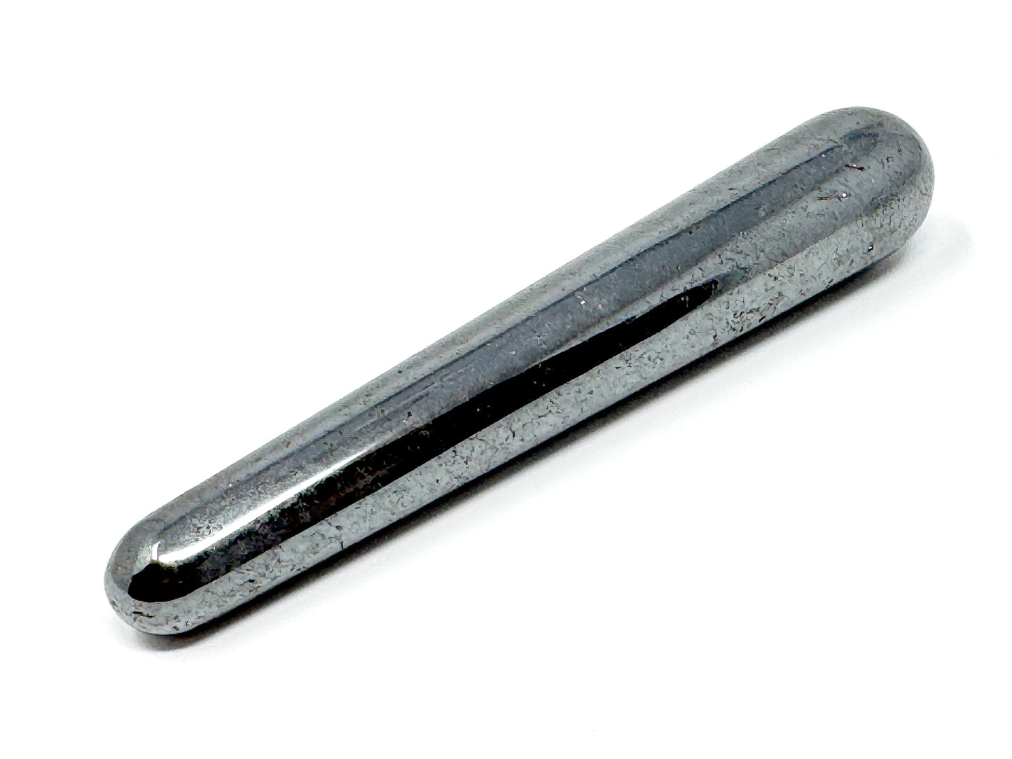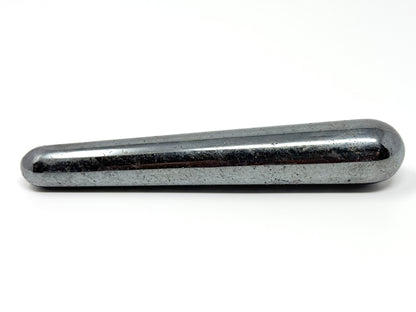 The Hematite Crystal has been cut and polished into a sleek, tactile crystal massage wand shape.