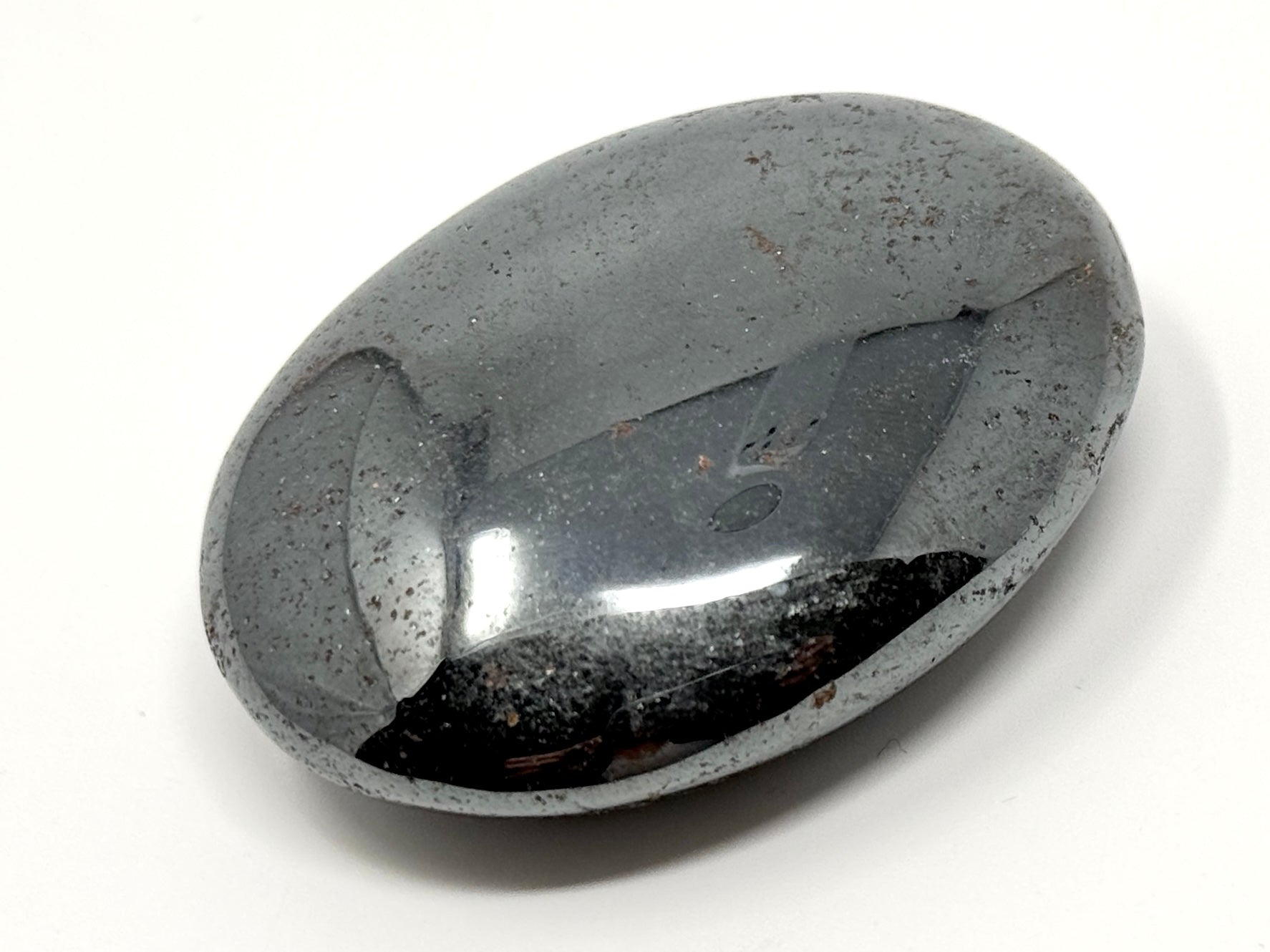 The Hematite Crystal has been cut and polished into a sleek, tactile, oval palm stone crystal shape or oval crystal pebble shape.