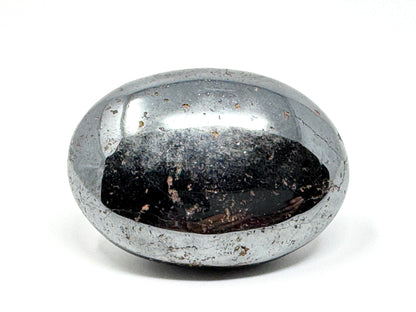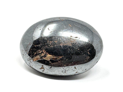 The Hematite Crystal has been cut and polished into a sleek, tactile, oval palm stone crystal shape or oval crystal pebble shape.