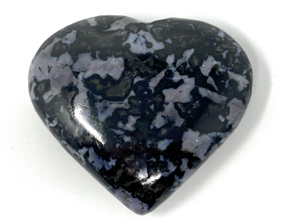 The Indigo Gabbro Heart Crystal's careful, smooth polish enhances these gorgeous purple hues which burst from the stone in their vibrancy.