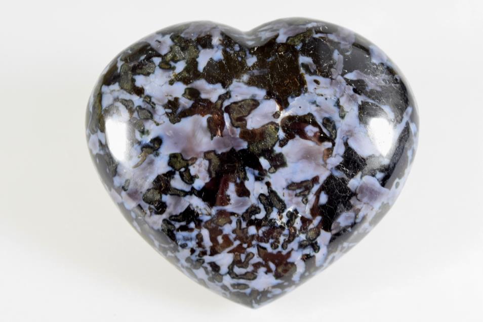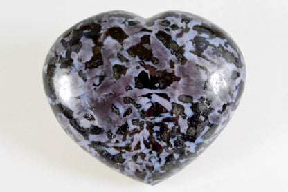 The Large Indigo Gabbro Heart Crystal's careful, smooth polish enhances these gorgeous purple hues which burst from the stone in their vibrancy.