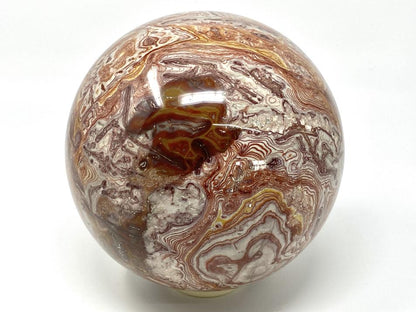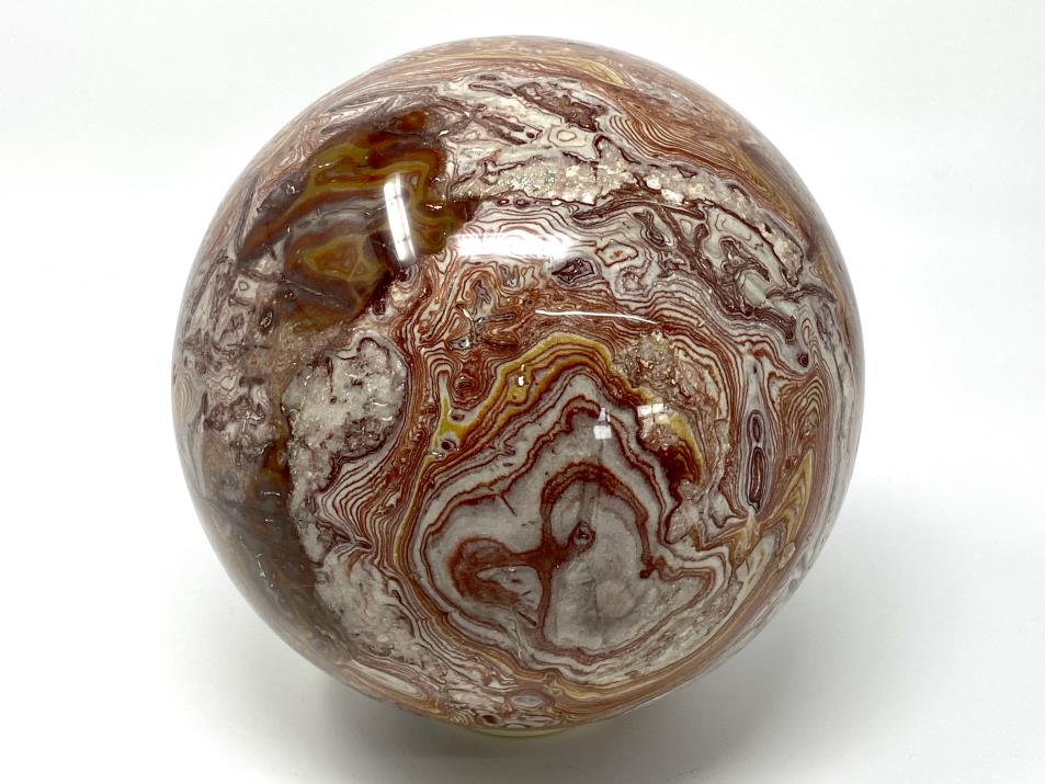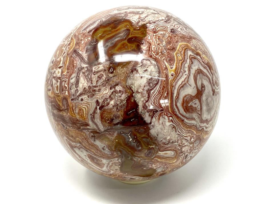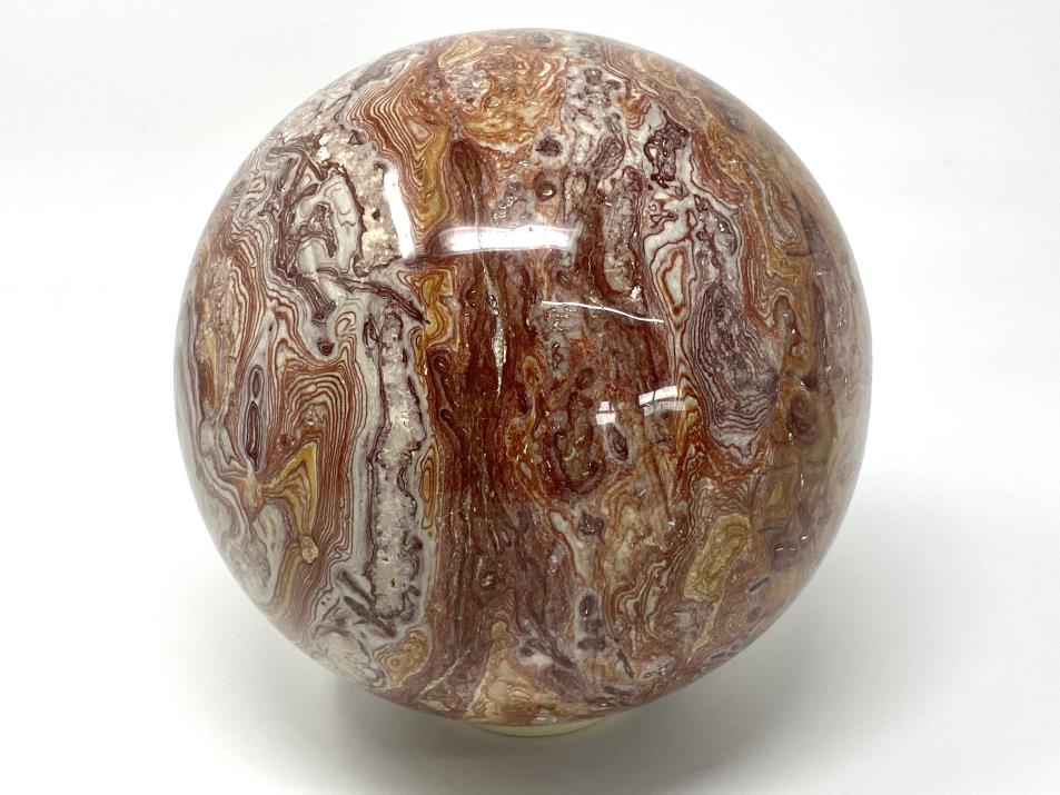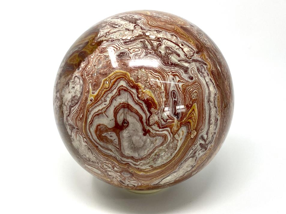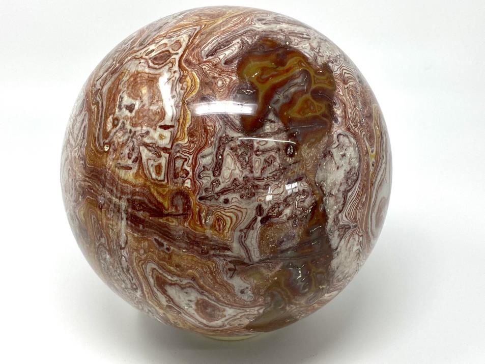This large crystal sphere displays gorgeous swirls of colour ranging from rust-reds, to light oranges and creams.