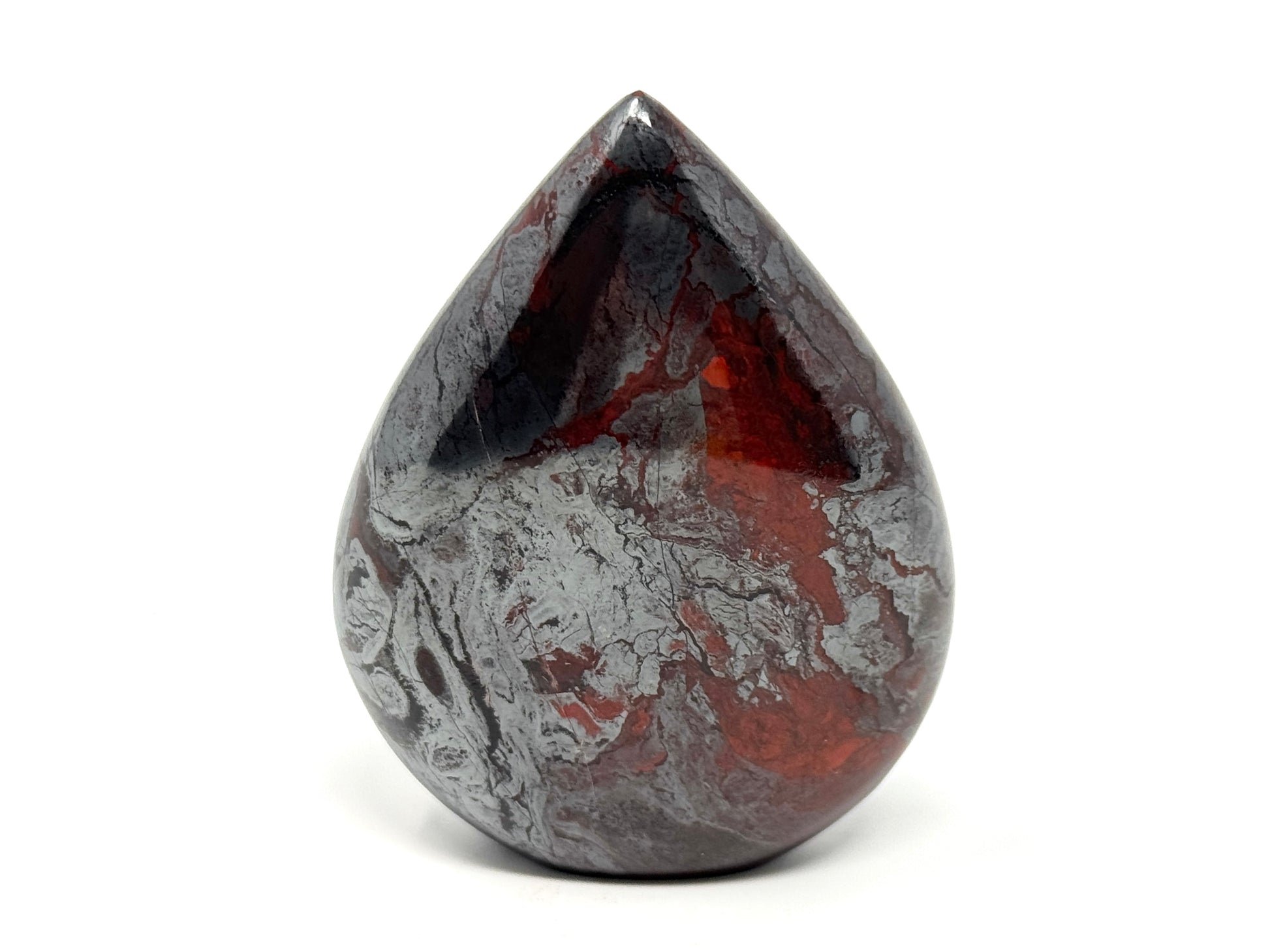This Jaspilite Crystal Free Shape is of a very high grade, and the careful polish has enhanced the shine and vibrancy of this stone's volcanic colours and patterns.