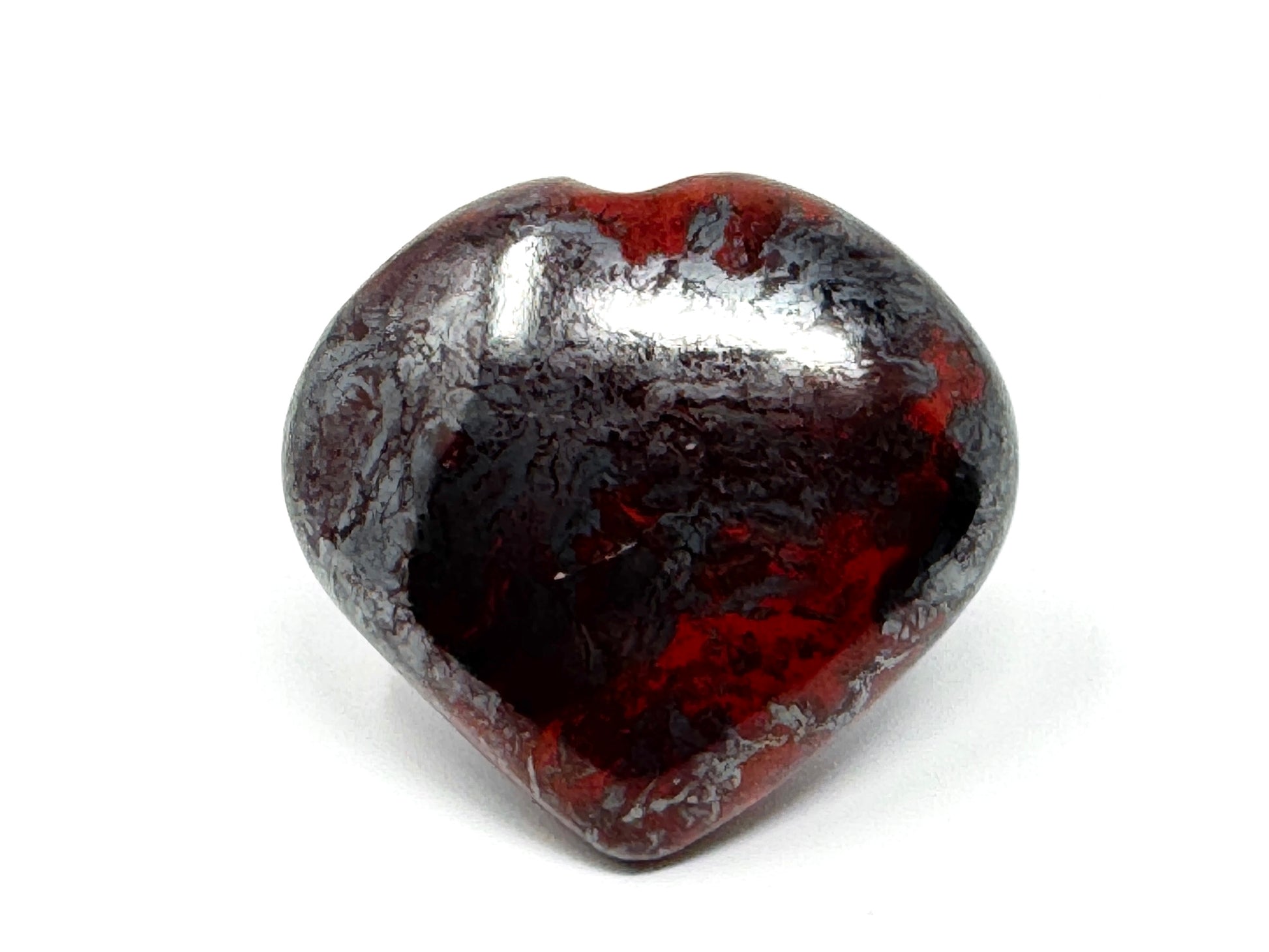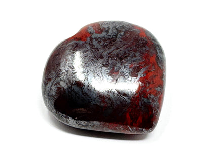 This unique Jaspilite Crystal Heart or Jaspilite Heart Crystal measuring 6cm wide displays a gorgeous mixture of vibrant Red Jasper and glistening, metallic Silver Hematite in striking swirling patterns.