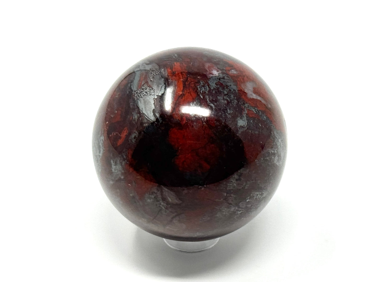 This Jaspilite Crystal Sphere is of a very high grade, and the careful polish has enhanced the shine and vibrancy of this stone's volcanic colours and patterns.
