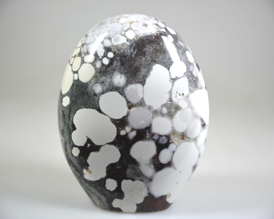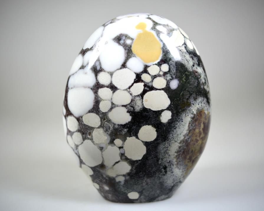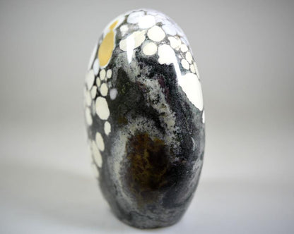 This large King Cobra Jasper Freeform measures 11cm tall and displays a unique orb pattern in exquisite colours.