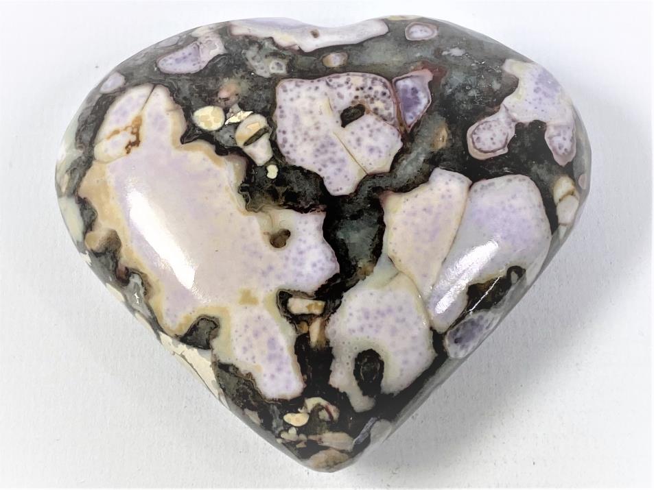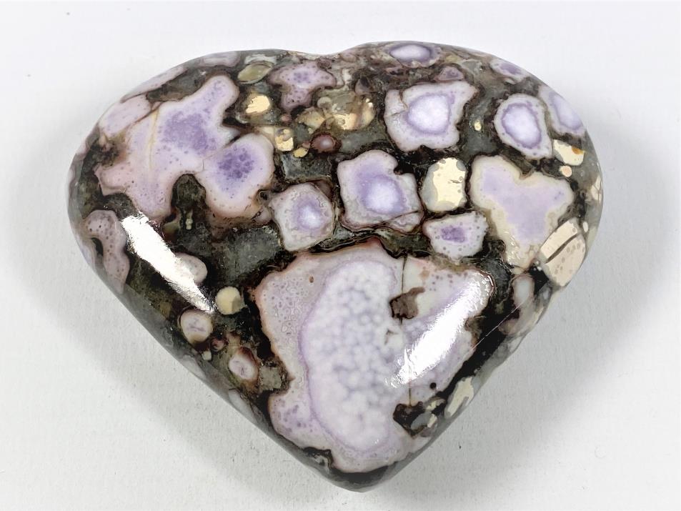 In this King Cobra Jasper Heart Shaped Stone, large orbs of vibrant lilac purple contrast marvellously against each other and a sleek dark brown and smoky grey backdrop.