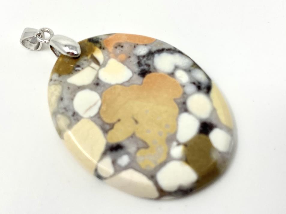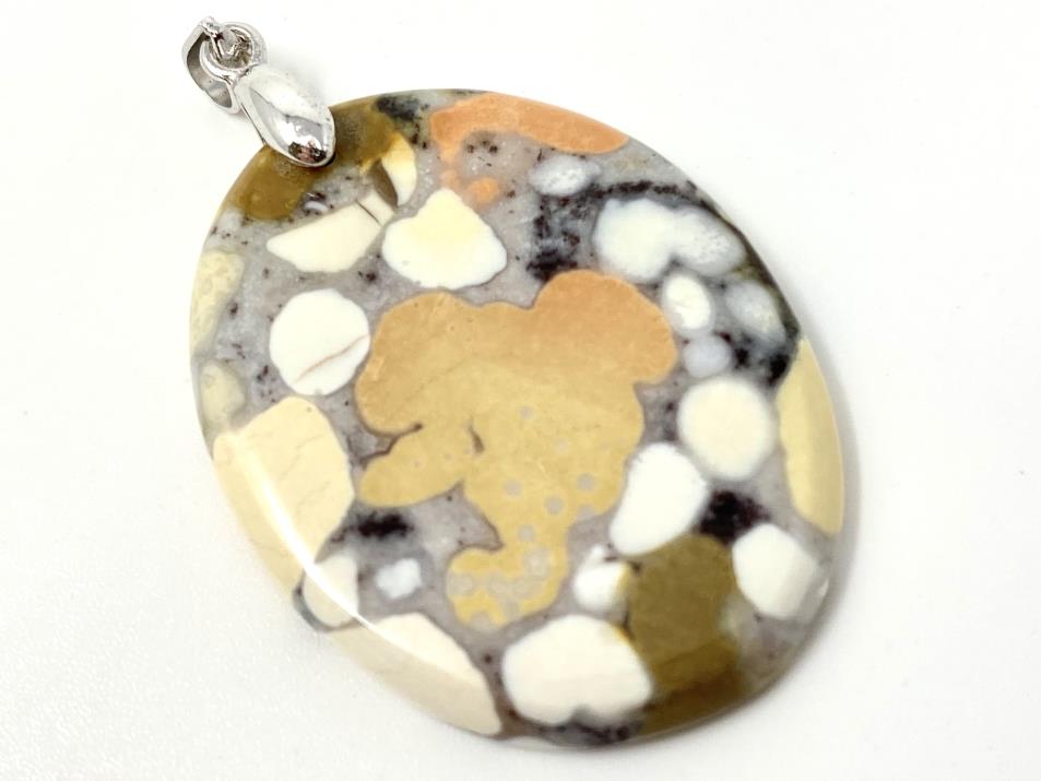 This piece of Crystal Jewellery has been drilled and set with a rhodium-plated, 925 silver bail perfect for attaching to a chain to make a King Cobra Jasper Necklace.