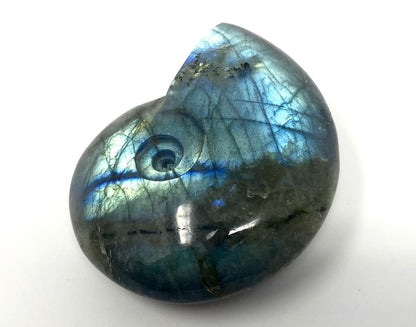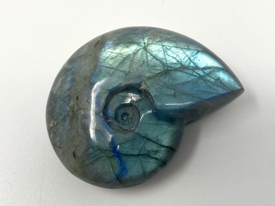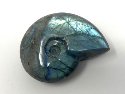 This unique labradorite ammonite would make a perfect gift for crystal collectors, or for those who love fossils just as much as crystals.
