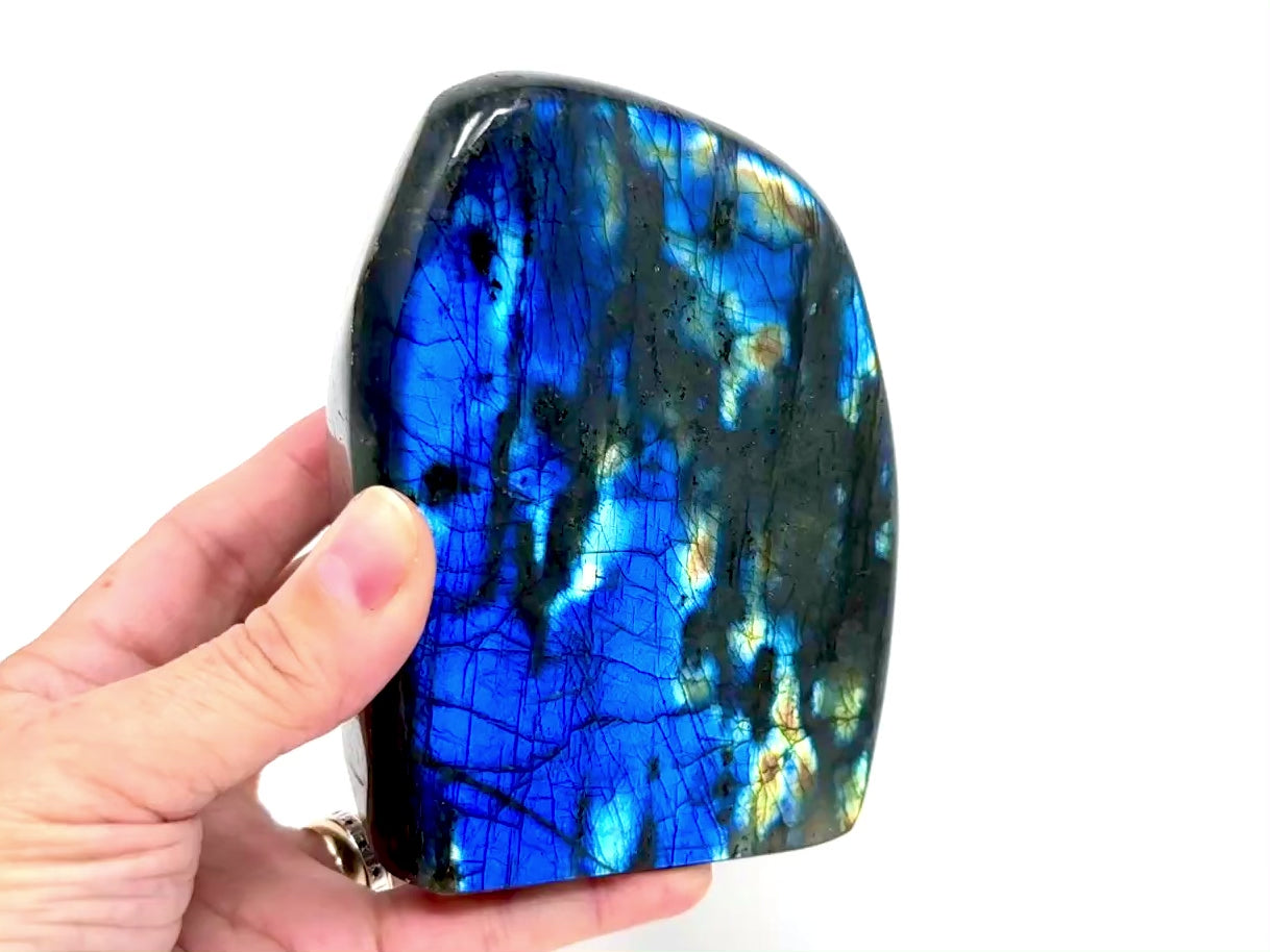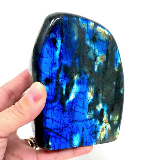 Measuring 11.9cm tall this stunning stone has been cut by artisans into a striking Labradorite Freeform Shape.