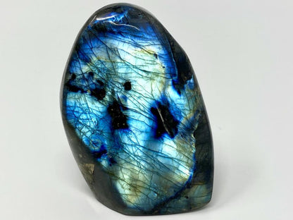 Measuring 11.8cm tall, this gorgeous stone has been cut by artisans into a striking Labradorite Freeform Shape.