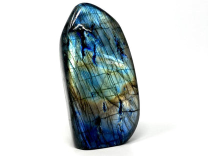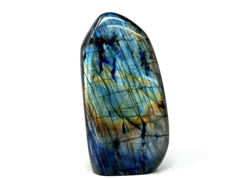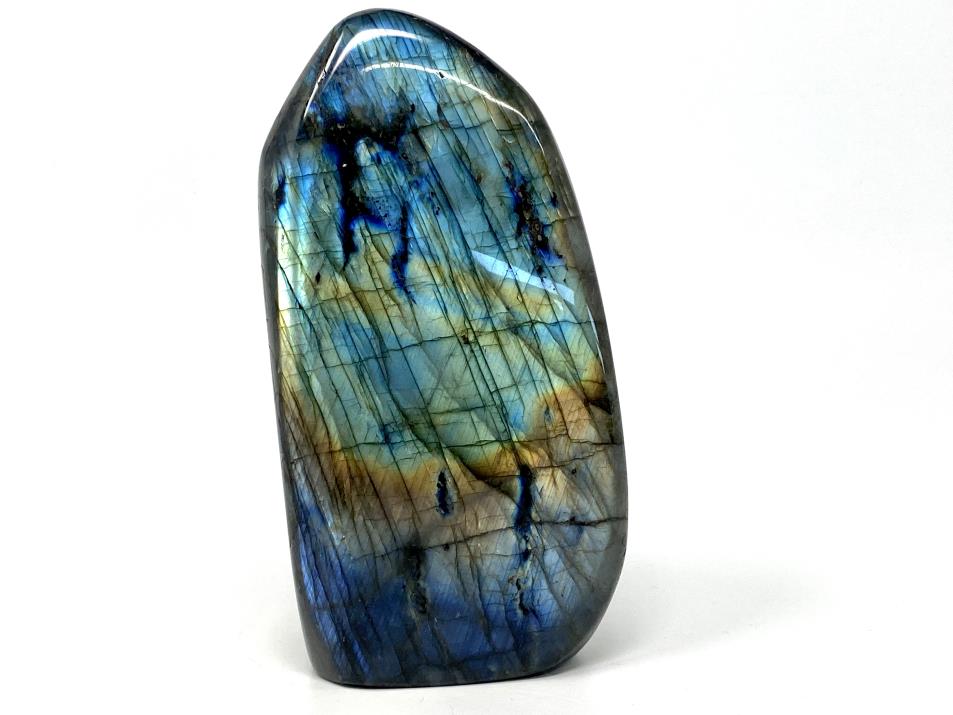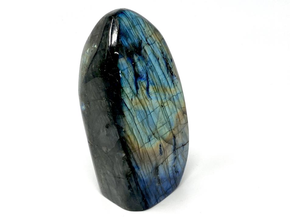 Measuring 14.3cm tall, this stunning stone has been cut by artisans into a striking Labradorite Freeform Shape.