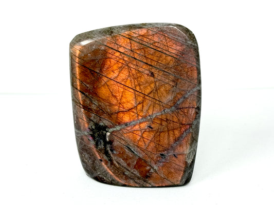 Measuring 14.7cm tall, this stunning stone has been cut by artisans into a striking large Labradorite Freeform Shape.