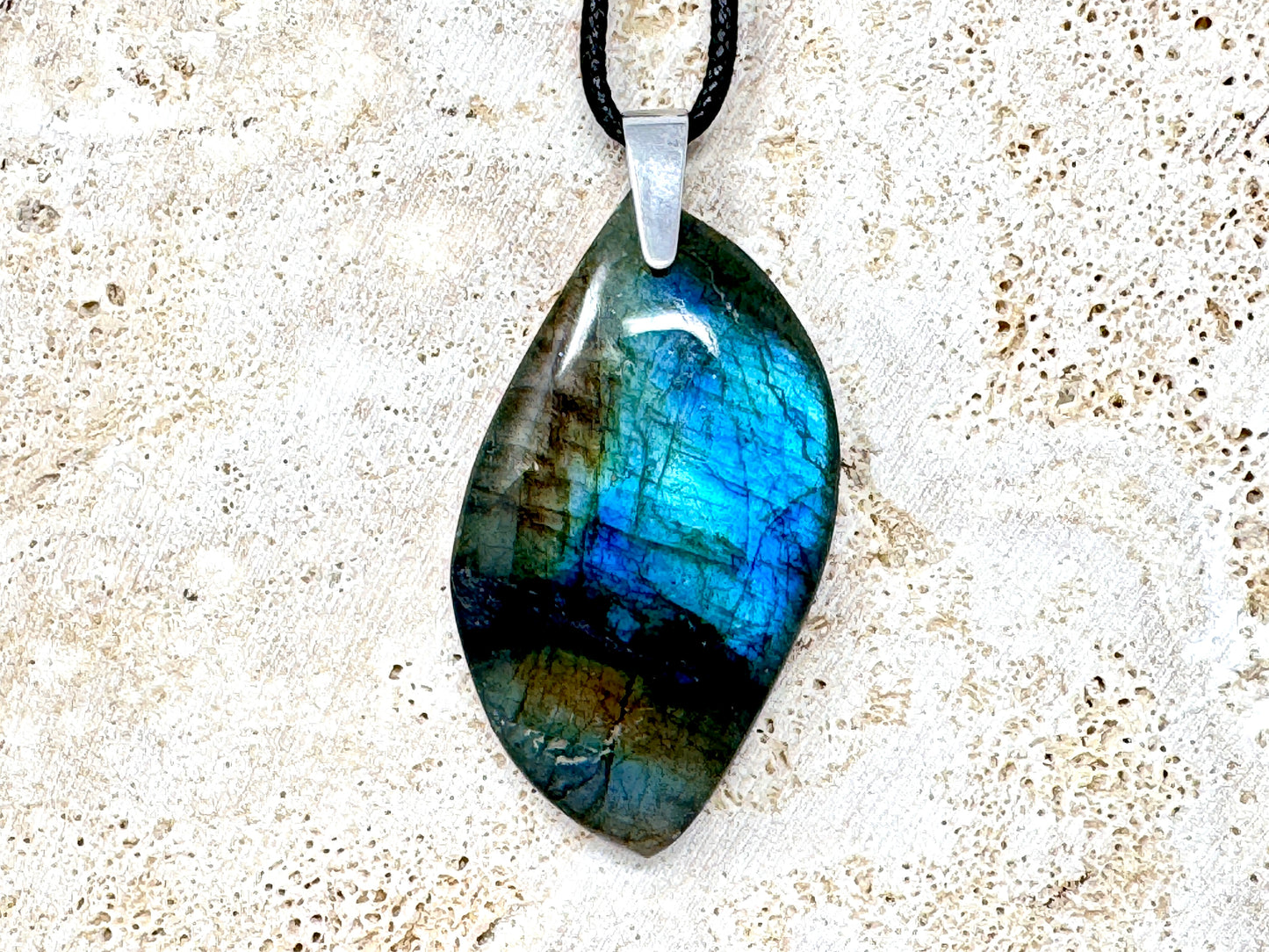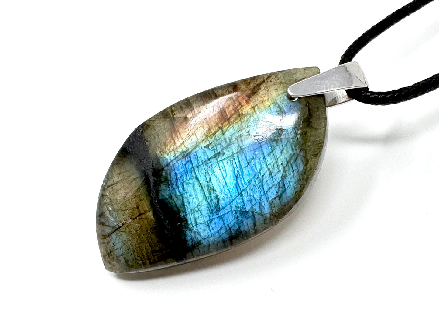 This piece of Labradorite Jewellery has been cut into a Free Shape Pendant and hand-polished to a fantastically high standard in our UK workshop.