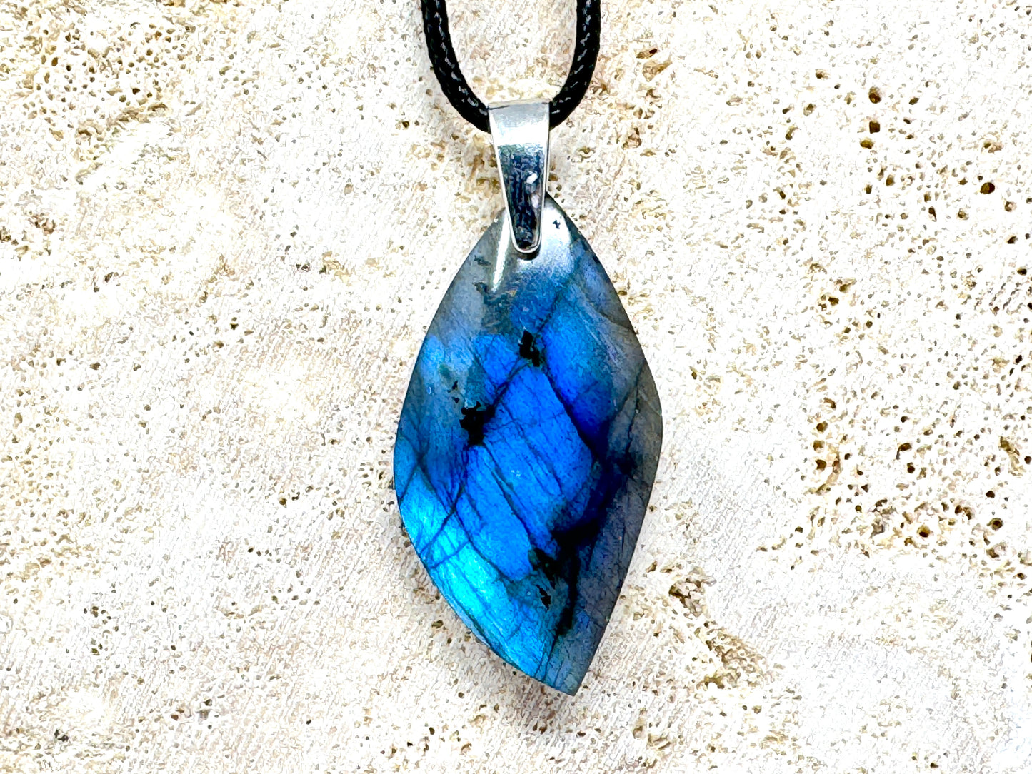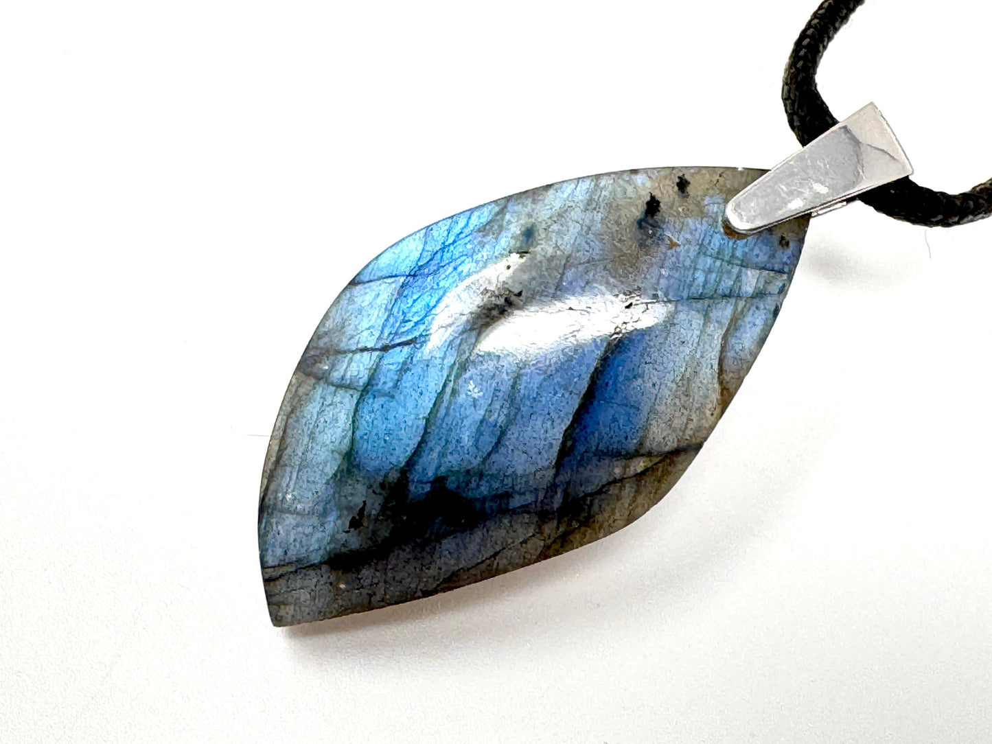 This piece of Labradorite Jewellery has been cut into a Free Shape Pendant and hand-polished to a fantastically high standard in our UK workshop.
